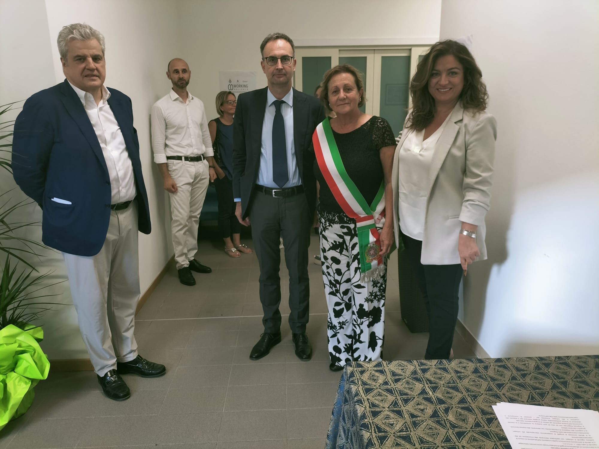 Presso i locali  di Via Cesare Battisti, durante l’inaugurazione del Coworking solidale