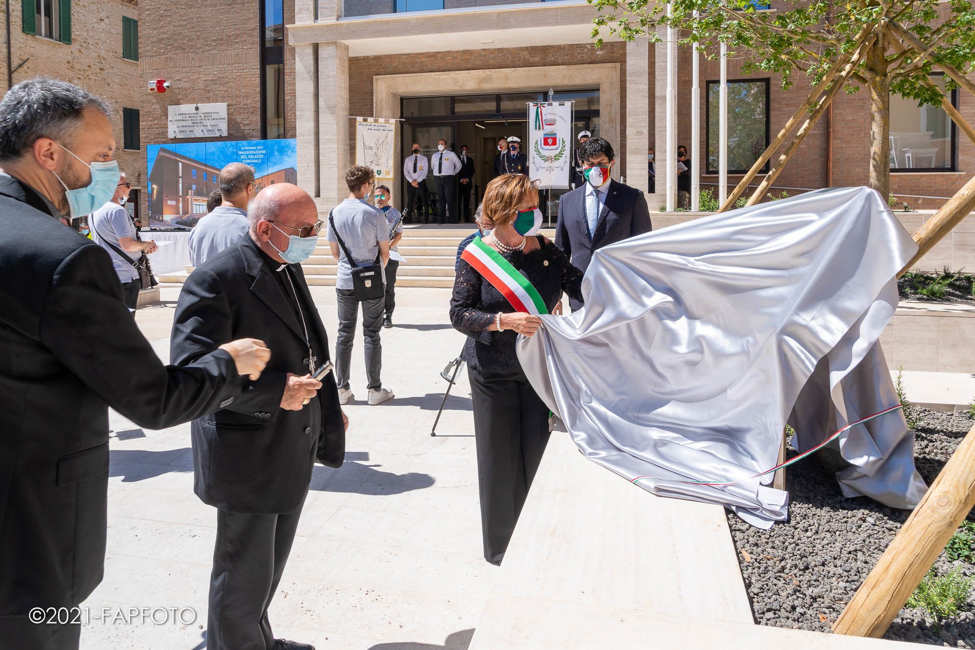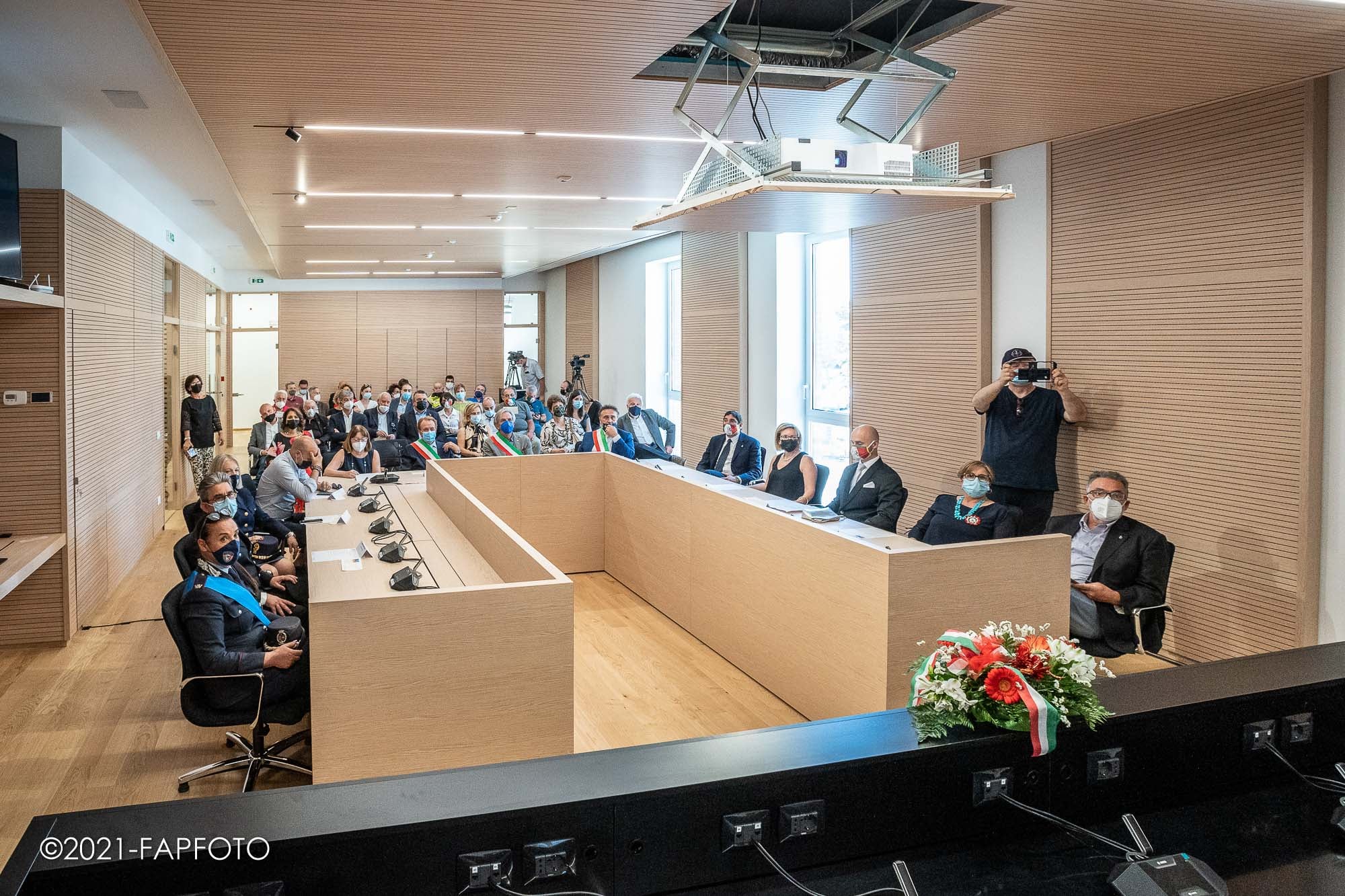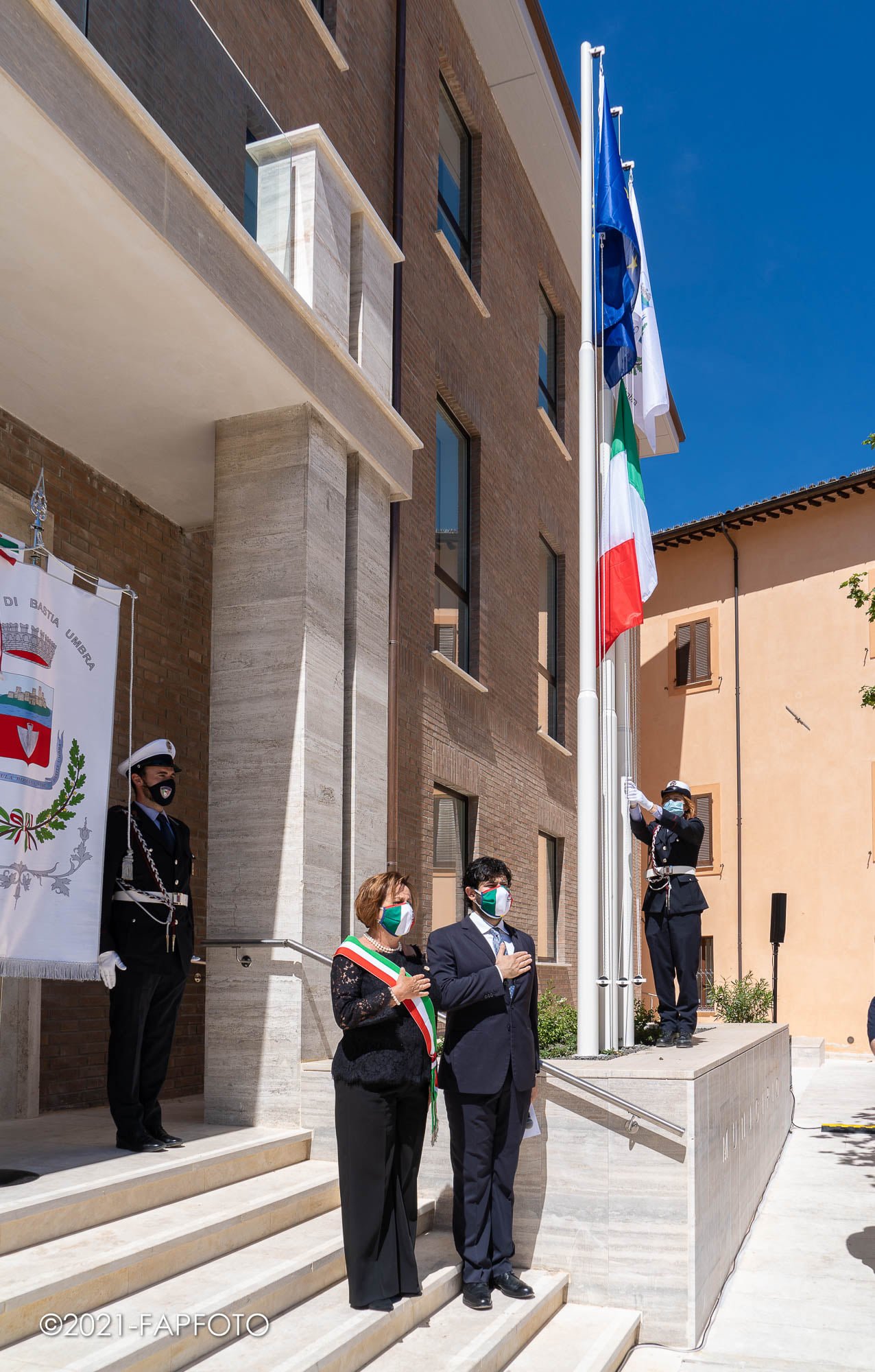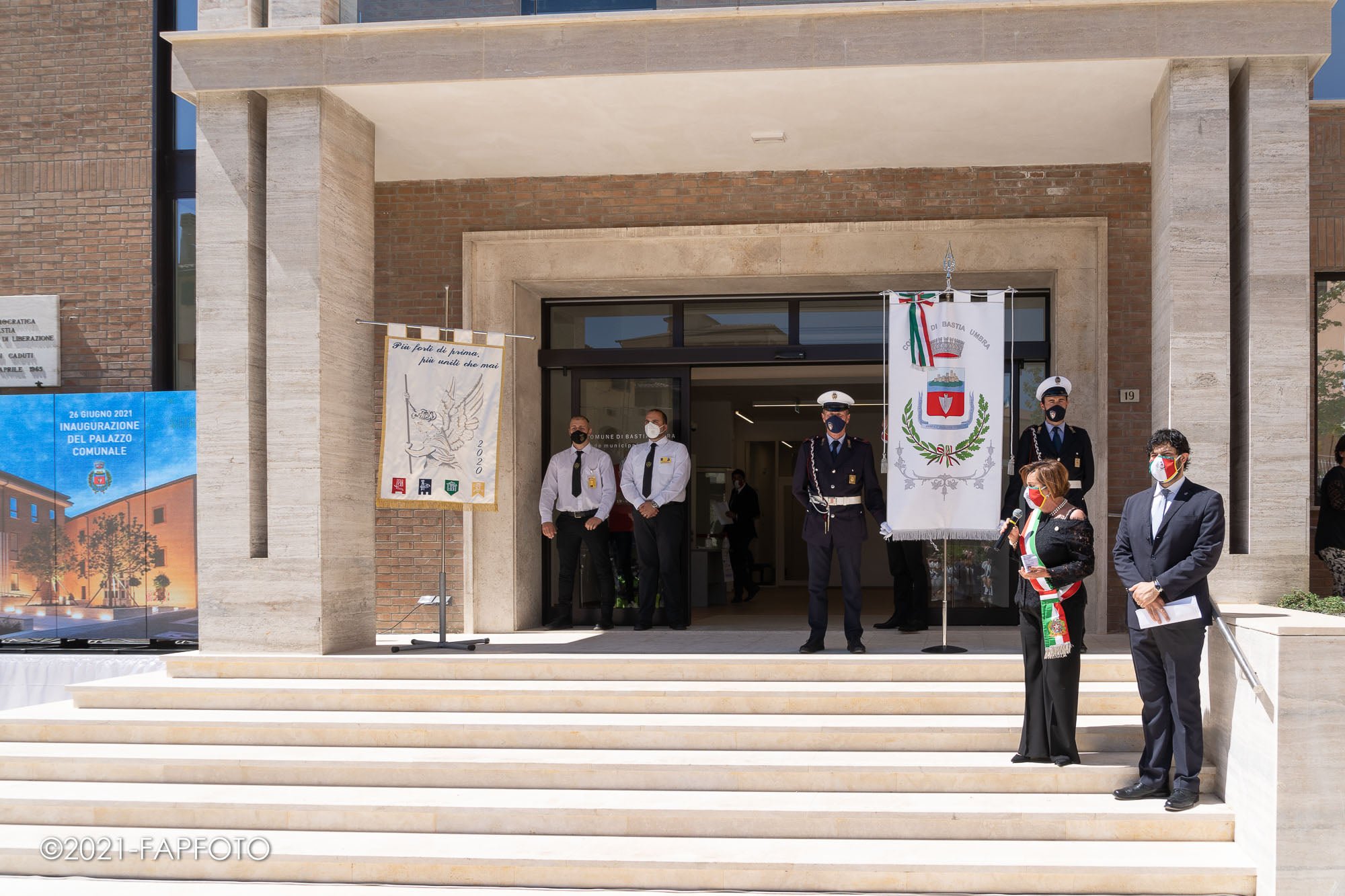 Ridare alla città di Bastia il Municipio inaugurato nell’anno 1964 dall’allora Sindaco Cav. Francesco Giontella, in parte chiuso dal 2014 rappresenta in questo momento storico un segno di speranza, un segno per tornare gradualmente ad una quotidianità senza dimenticare i sacrifici fatti in questo anno di pandemia. I lavori di adeguamento sismico e restyling del Palazzo Comunale sono iniziati nel 2018. Il progetto ha previsto interventi mirati, è stata impiegata una tecnologia avanzata di protezione sismica, gli spazi del sottotetto sono stati riqualificati, ampliati per ambienti uffici e sale riunioni. E’ stato apportato un radicale intervento di miglioramento impiantistico per migliorare le condizioni di vivibilità e salubrità all’interno degli ambienti e per ridurre i consumi di energia. Gli impianti sono stati adeguati alle normative vigente. Per la parte esterna l’obiettivo primario del progetto è stato quello di migliorare l’accessibilità all’ingresso principale sulla piazza Cavour anche con una nuova illuminazione con luci lineari a terra. Dopo l’Inno di Mameli suonato dalla Banda Musicale di Costano, l’Alzabandiera e la donazione dello Stendardo che Chorus – Ricamificio Umbro ha realizzato in occasione del 29 settembre 2020, rappresentante il santo patrono San Michele ferito, simbolo della nostra città colpita dalla pandemia e pronta a ricostruirsi sotto lo slogan “Più forti di prima, più uniti che mai”. Con le note del “Silenzio”, dopo lo svelamento della Stele dedicata alle Vittime del Covid-19 e la deposizione di una corona di alloro, la benedizione del Palazzo Comunale, impartita dal Padre Vescovo Mons. Domenico Sorrentino e il parroco Don Marco Armillei, è stato fatto il taglio del nastro. “Il taglio del nastro insieme a voi presenti – ha affermato il Sindaco Paola Lungarotti – insieme a tutte le autorità civili, militari e religiose, a tutti i miei concittadini e concittadine che ci seguono anche in diretta streaming, è stato accompagnato da due simboli che rappresentano la nostra città, oltre al Gonfalone Comunale, che hanno segnato e segnano i nostri giorni, lo Stendardo di San Michele e l’inaugurazione e la benedizione della lapide dedicata alle vittime del Covid, per non dimenticare mai, perché senza memoria non c’è rinascita”. Il Presidente del Consiglio Comunale ha fatto da moderatore agli interventi susseguitisi nella nuova Sala del Consiglio: il Presidente dell’Assemblea Legislativa dell’Umbria Marco Squarta, l’ex-Sindaco Stefano Ansideri, l’Assessore ai Lavori Pubblici Stefano Santoni, lo Studio Exup con la relazione dell’Ing. Leonardo Locchi. E’ intervenuta infine la professoressa Maria Elisabetta Monacchia dell’Ist. Comprensivo Bastia 1 presentando la proiezione del video sull’eroina bastiola Colomba Antonietti. Il video è stato realizzato per i 150 anni di Roma Capitale, per un concorso indetto dal Ministero.