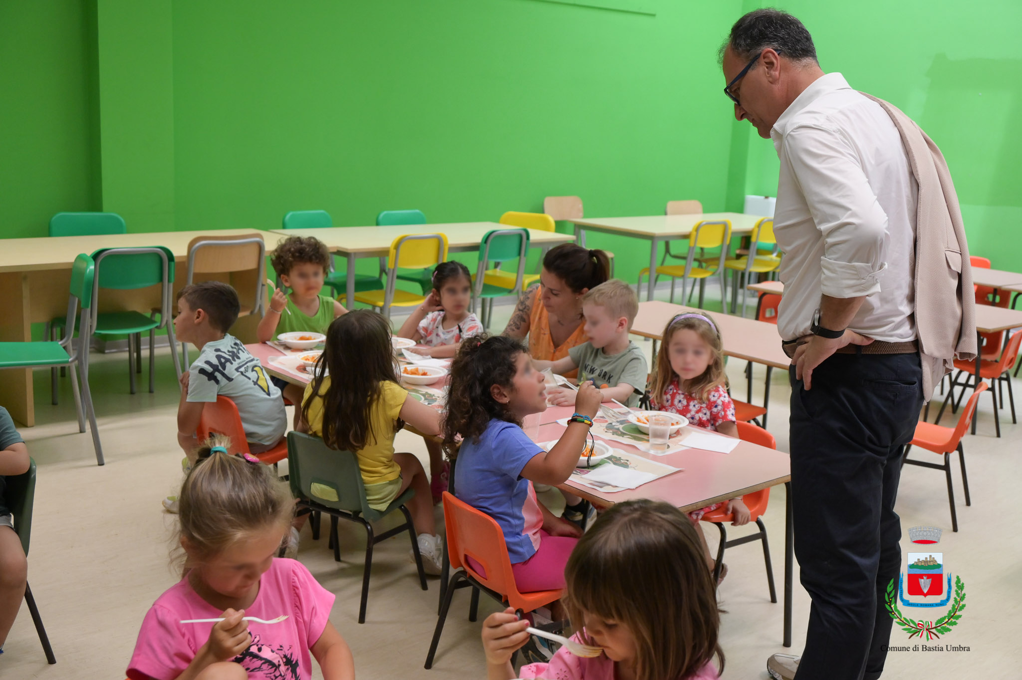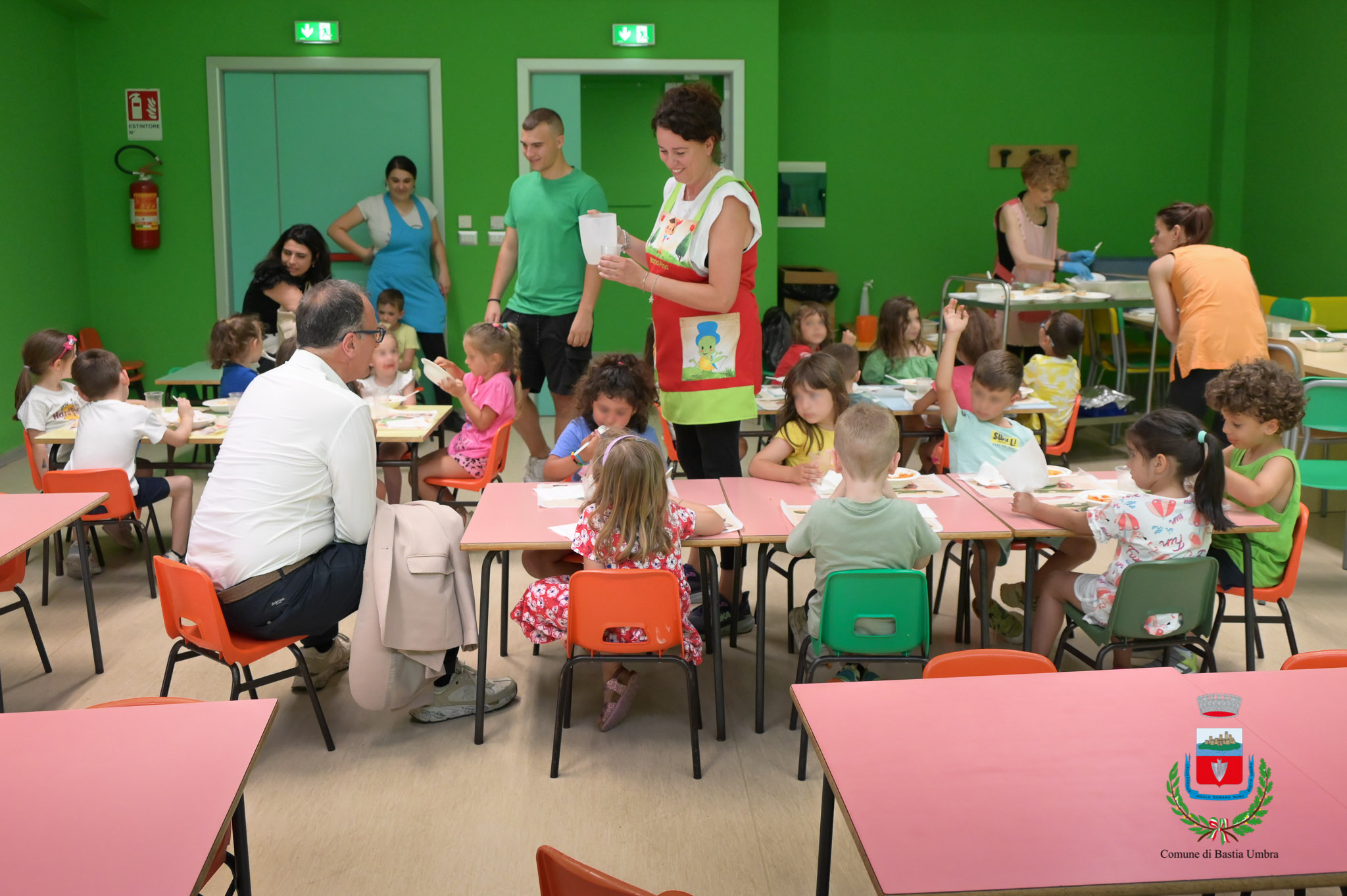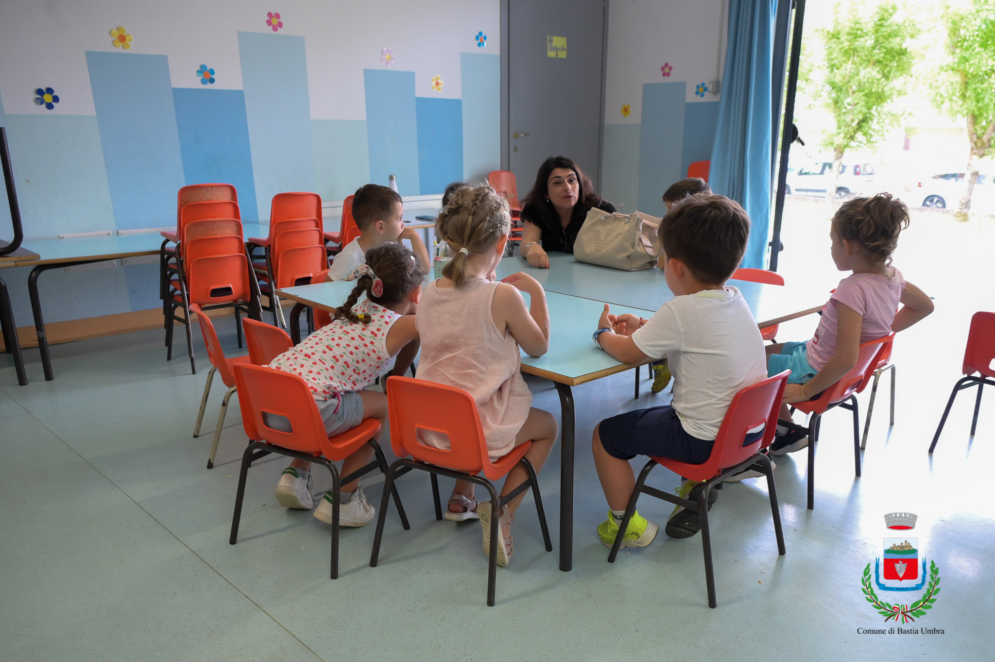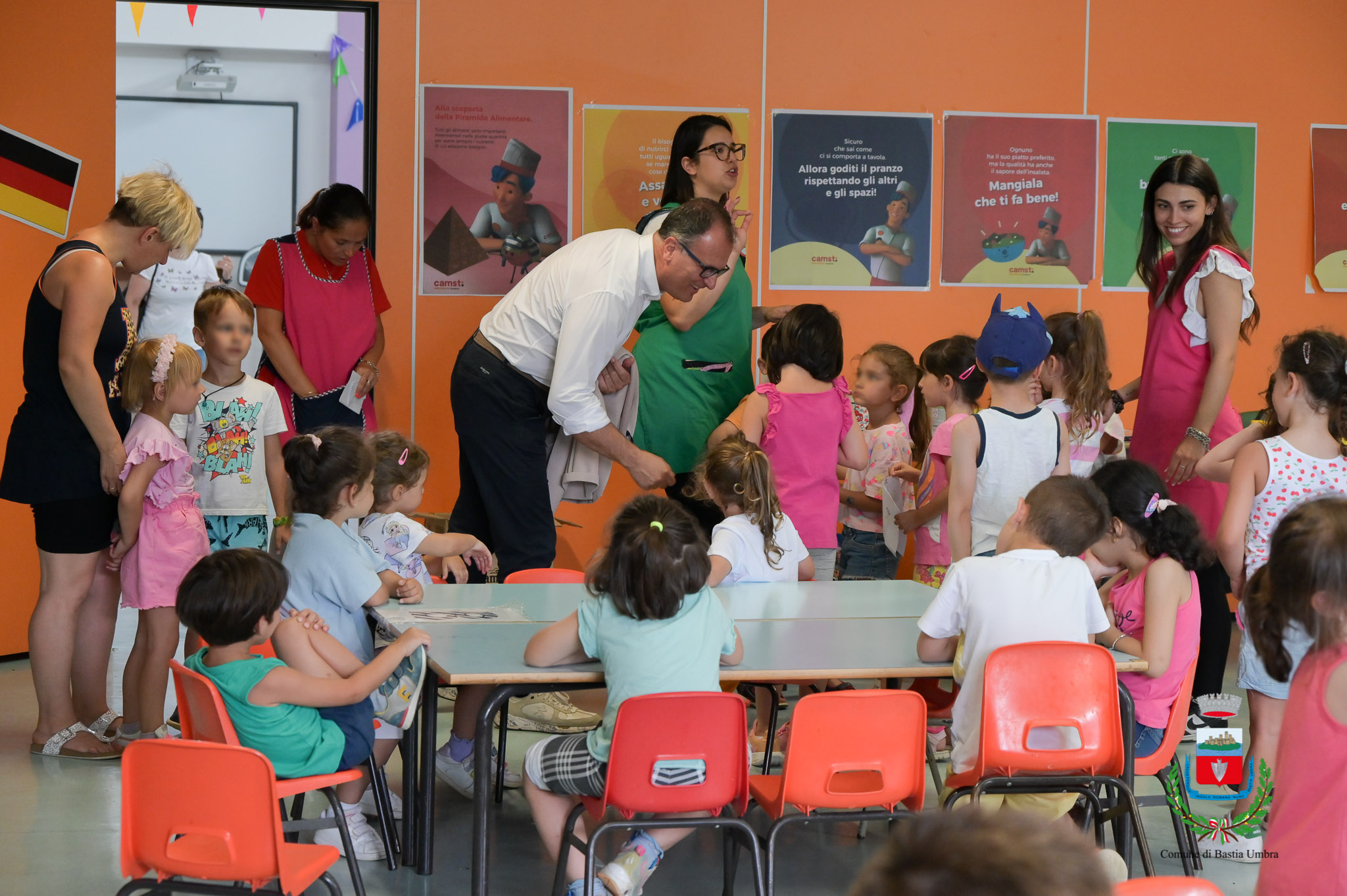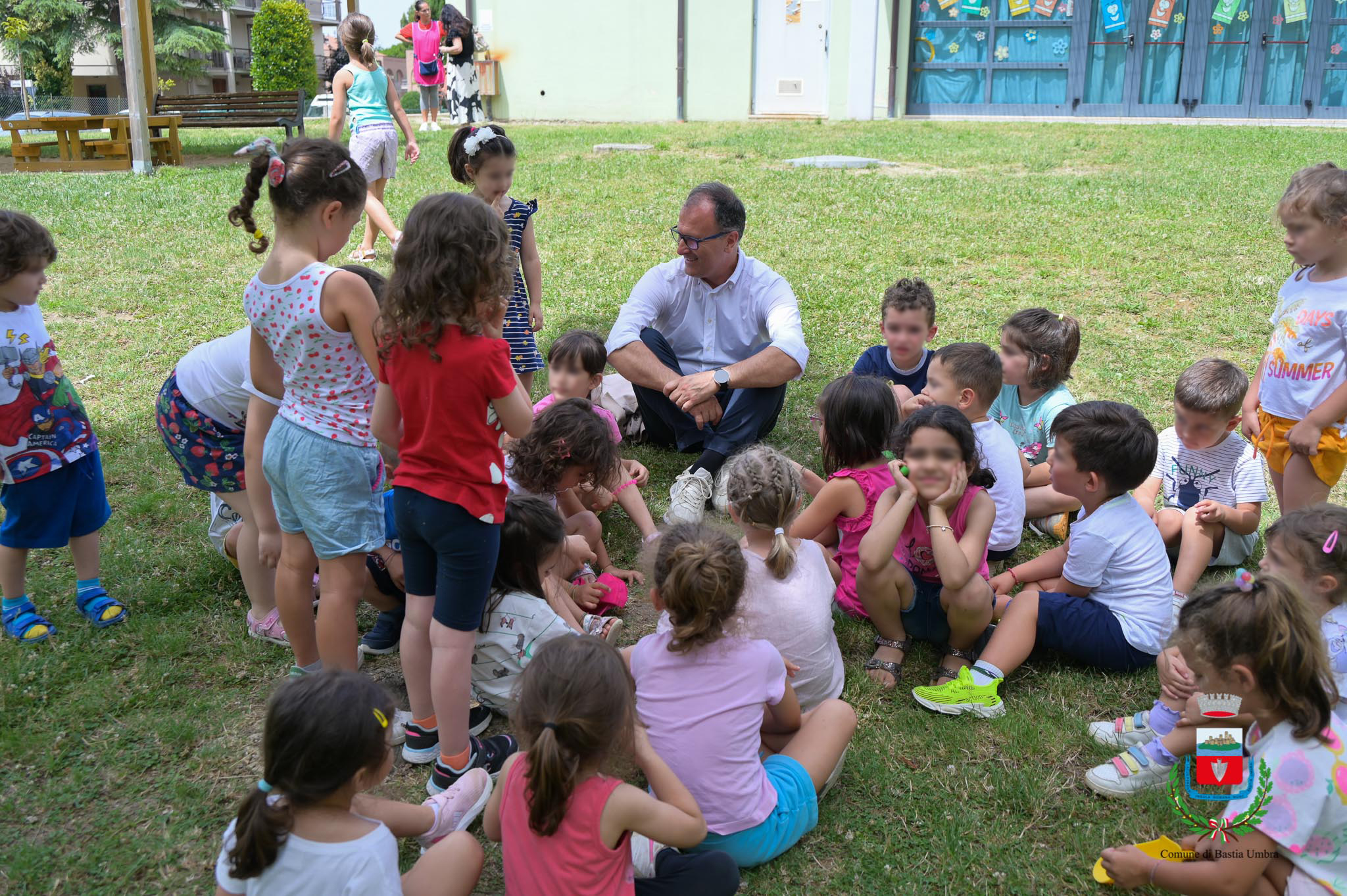 Questa mattina il Sindaco Erigo Pecci, insieme alla Responsabile del Settore Servizi alla Persona e Politiche Scolastiche del Comune di Bastia Umbra Giuseppa Anatra hanno fatto visita alle bambine e ai bambini per augurare un’Estate piena di attività, giochi, animazione e momenti di divertimento.