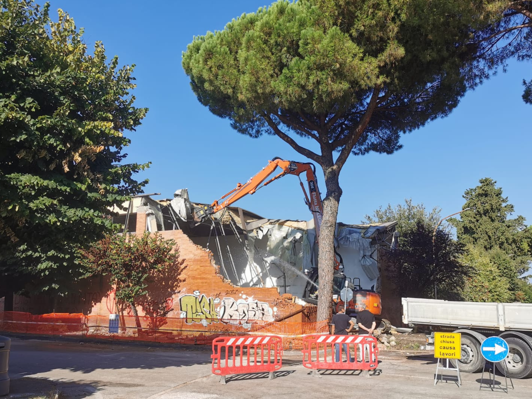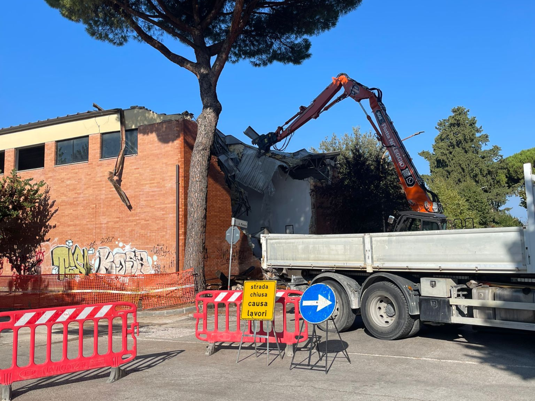 Questa mattina è ufficialmente iniziata la demolizione della Palestra delle Scuole Medie