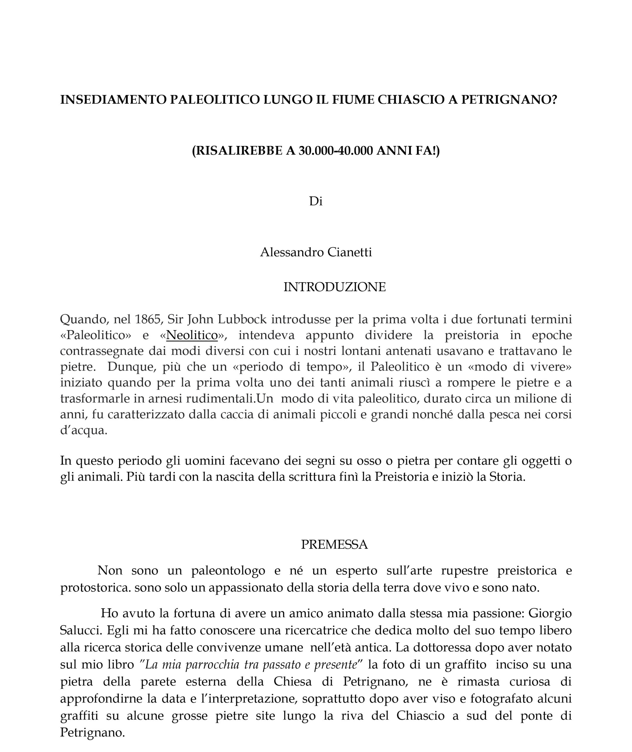Insediamento paleolitico lungo il fiume Chiascio a Petrignano?