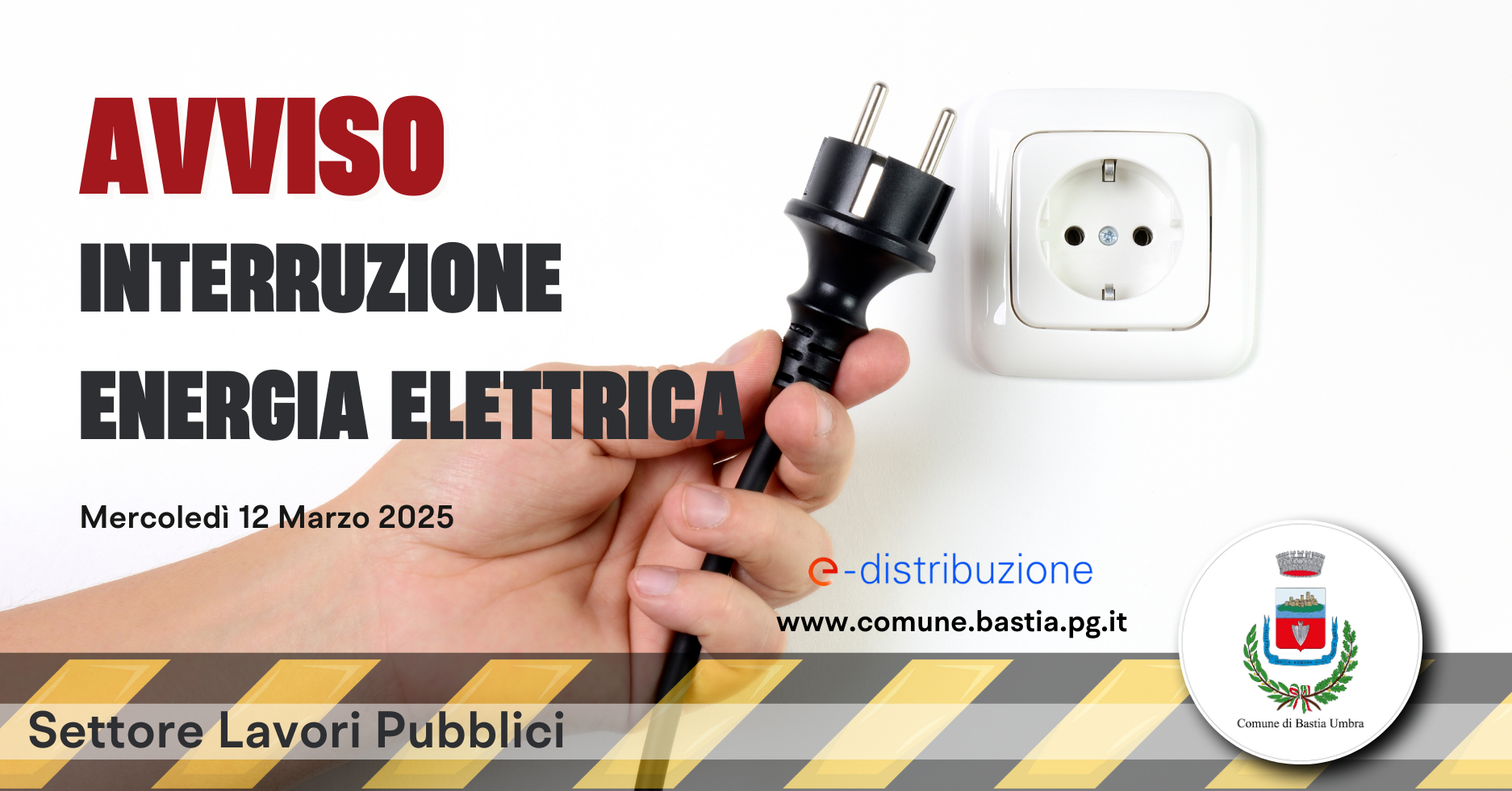 Bastia Umbra, 11/03/2025 – Si comunica ai cittadini che, a causa di lavori in corso sugli impianti, verrà interrotta l’energia elettrica dalle ore 13:30 alle ore 16:30 nelle seguenti vie di Bastia: