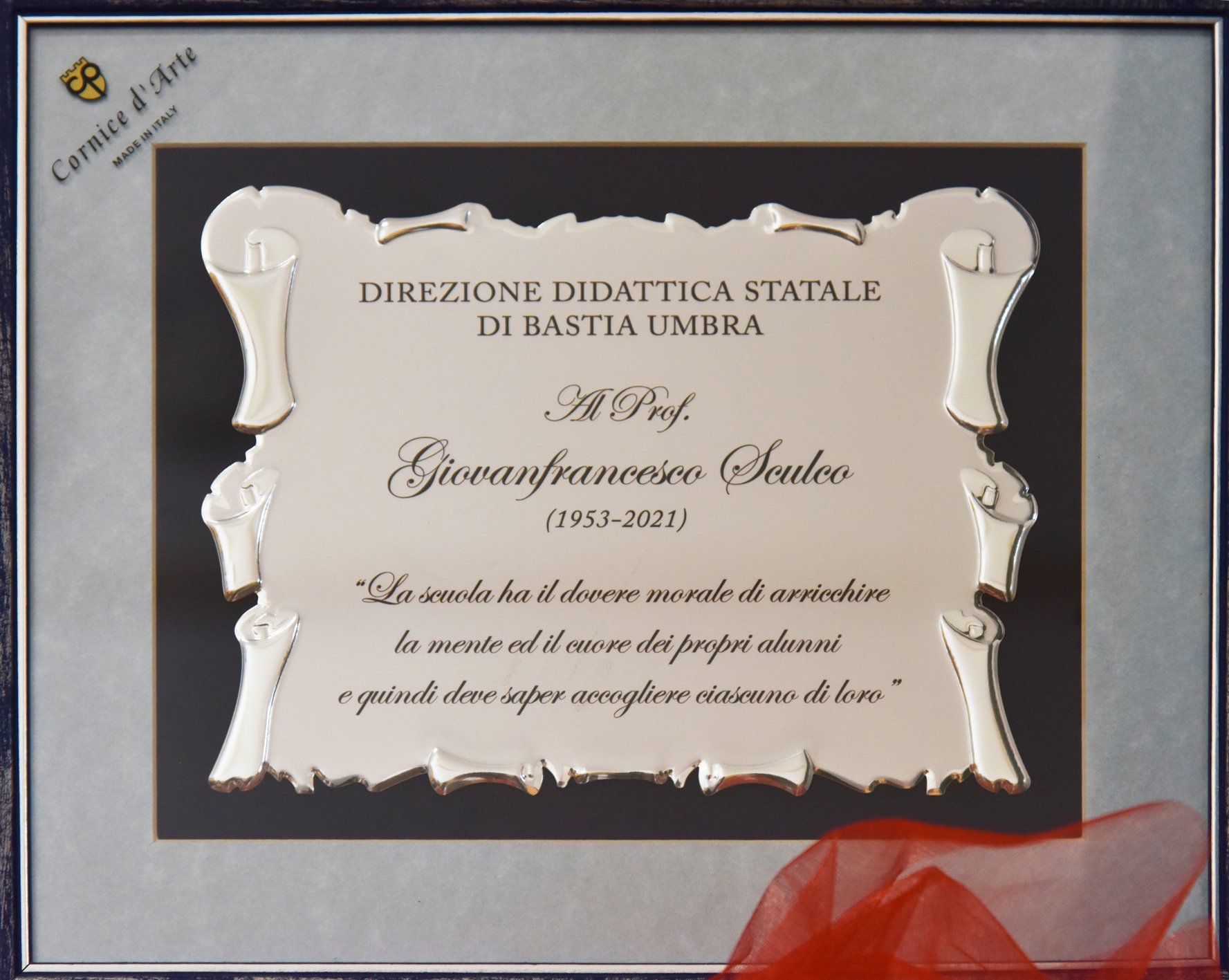 Presso l’aula è stata apposta una targa commemorativa dedicata al Prof. Giovanfrancesco Sculco, precedente Dirigente Scolastico della Direzione Didattica di Bastia Umbra, che si era impegnato costantemente nella realizzazione di progetti atti a migliorare l’insegnamento/apprendimento con un’attenzione particolare rivolta all’inclusione sociale e culturale dei soggetti maggiormente svantaggiati.