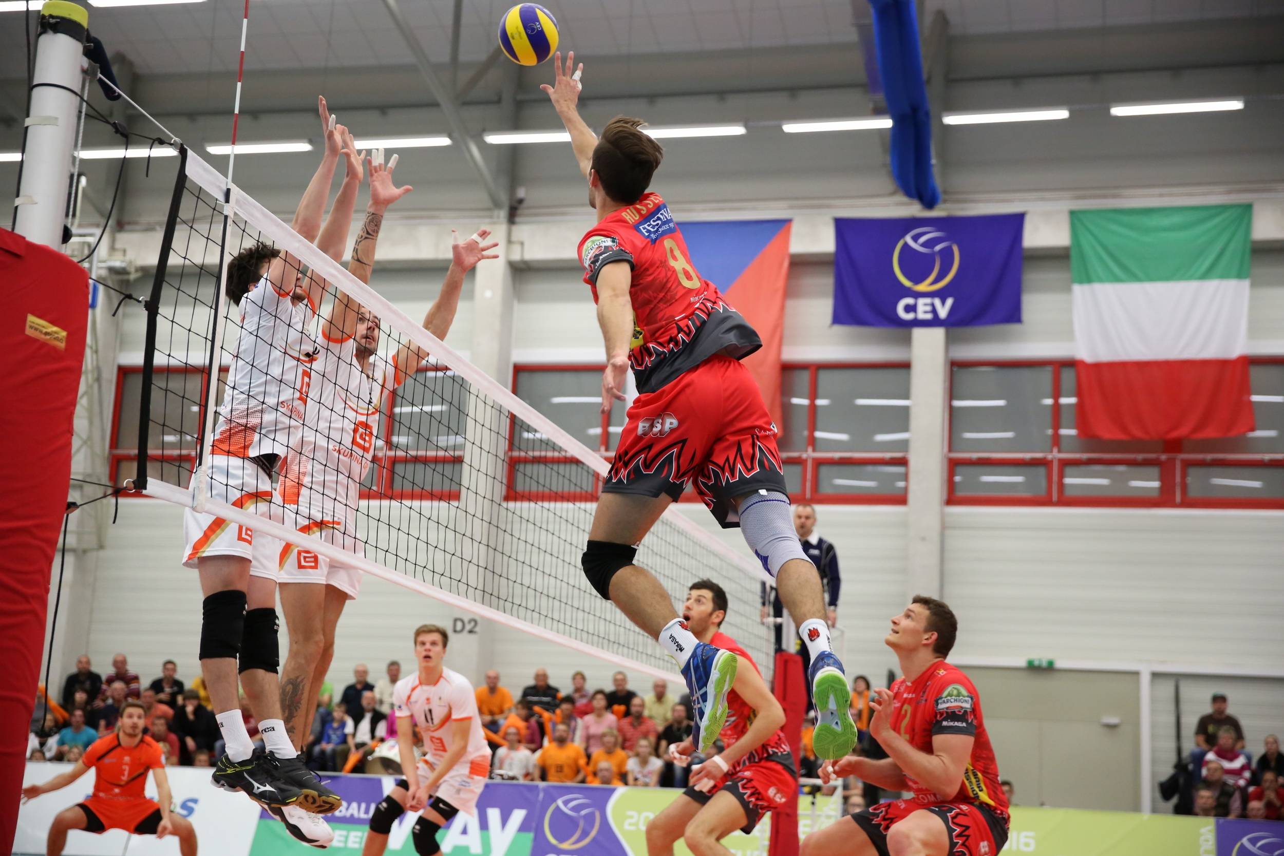 Castellani ha messo in campo fin dal primo pallone il martello americano Russell, inizialmente in coppia con Kaliberda e successivamente, dalla metà del primo set, con Fromm. E “Spider” ha dimostrato sul taraflex ceco le sue notevoli qualità in attacco (ha chiuso con 15 palloni vincenti), tenendo al tempo stesso botta anche in ricezione ed in difesa. La crescita di Russell, alla sua prima esperienza lontano dagli Stati Uniti, può essere un fattore importante nella Sir Conad di questa stagione.