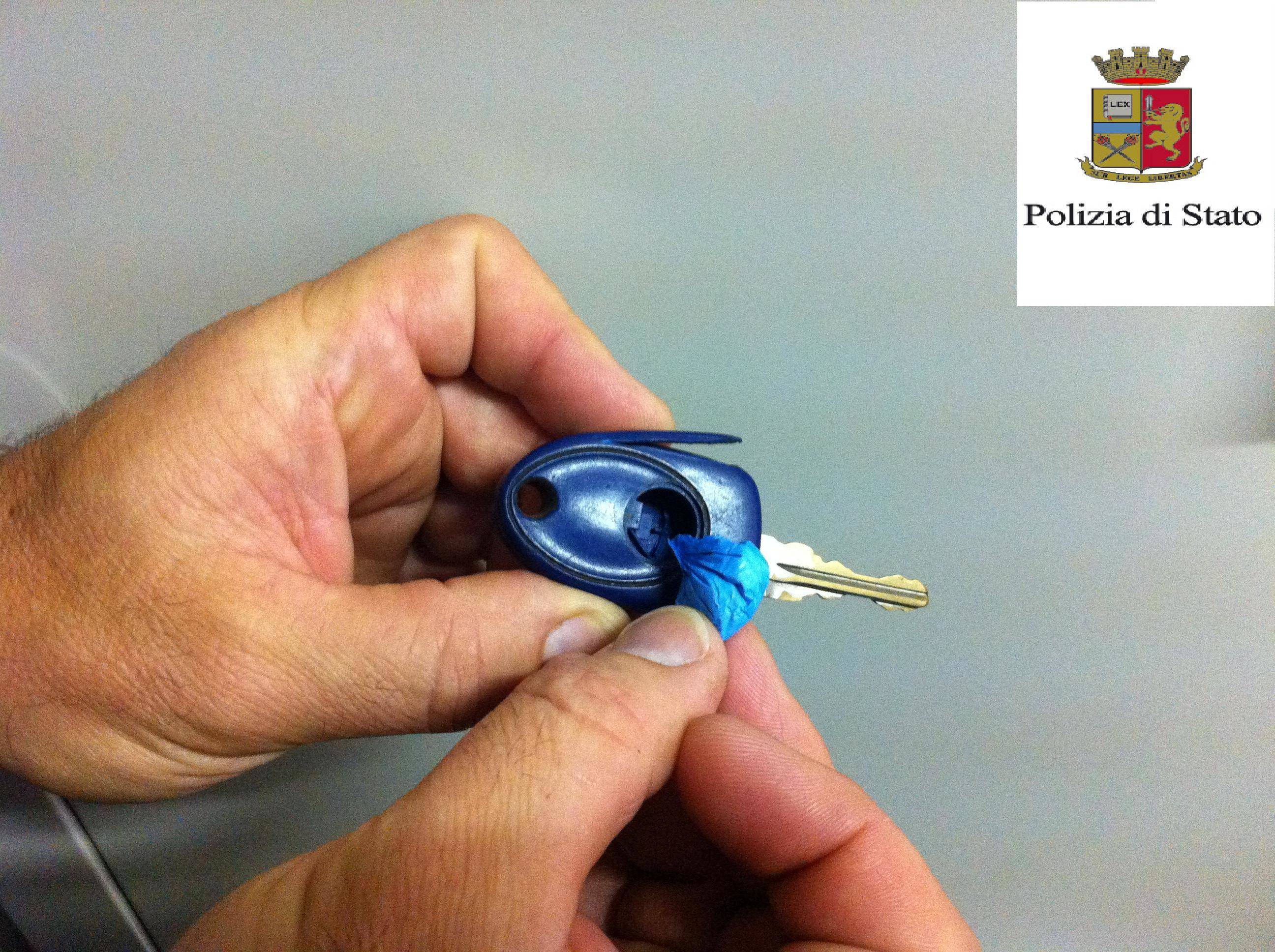Al telefono lo spacciatore non parlava mai esplicitamente di droga né di dose o prezzo. Giungeva sul luogo degli appuntamenti a bordo di una auto non di sua proprietà e, abilissimo nel fare gli scambi, trasferiva le dosi da un grammo già confezionate con del cellophane blu che venivano nascoste all’interno di un incavo di una chiave da automobili.