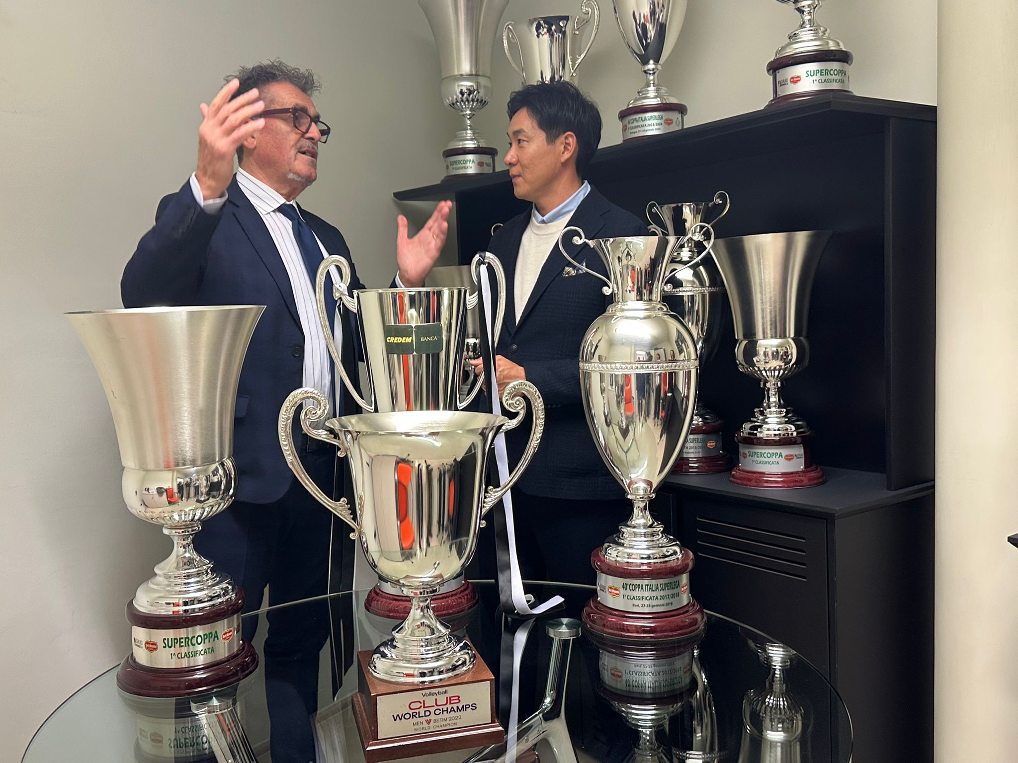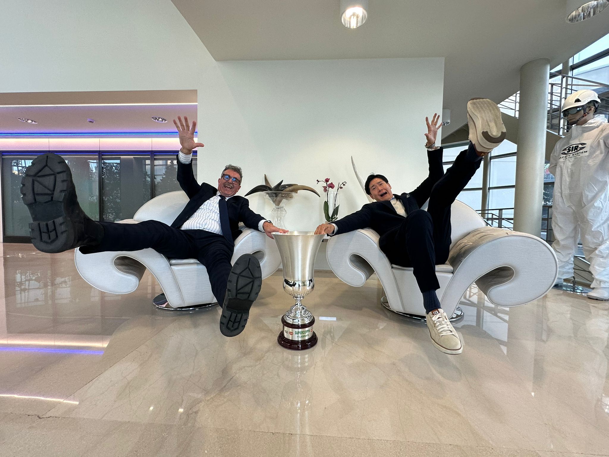 Non poteva mancare una visita all’azienda che dà il nome alla squadra: la Sir Safety System. La troupe giapponese è stata accolta dal presidente Gino Sirci che ha raccontato al microfono di Tomohiro Ishii com’è iniziata questa grande avventura nel mondo della pallavolo: un percorso che, cominciato nella stagione 2001-2002 in serie C, è cresciuto in maniera costante ed esponenziale, scalando, nel corso di vent’anni, l’olimpo del volley mondiale! La troupe giapponese è rimasta affascinata anche all’interno della “Sala dei Trofei”, dove sono racchiuse tutte le coppe conquistate dalla Sir nel campionato di massima serie italiana: 2 Mondiali per Club, 4 Coppe Italia, 2 Scudetti e ben 6 Supercoppe di cui l’ultima conquistata proprio all’inizio di questa nuova stagione, il 22 settembre al PalaWanny di Firenze, al termine di un match spettacolare con l’Itas Trentino, chiuso al tiebreak con Yuki Ishikawa che conquistò il suo primo trofeo con la maglia della Sir Susa Vim Perugia laureandosi Mvp di quella partita.
