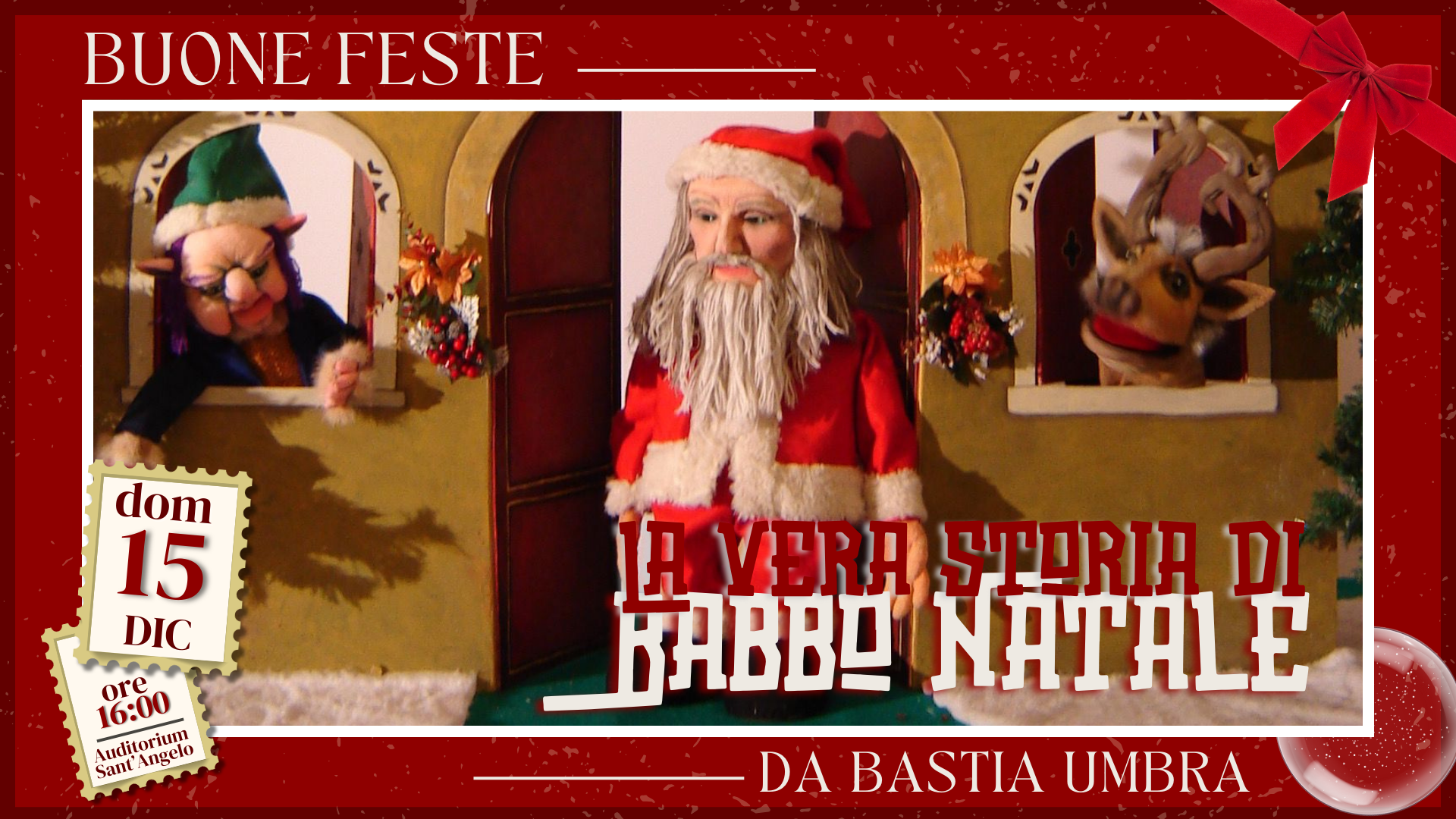 Questa Domenica, 15 Dicembre 2024 alle ore 16:00, vi aspettiamo presso l’Auditorium Sant’Angelo di Bastia Umbra per “La vera storia di Babbo Natale” a cura di Teatro di Figura Umbro.