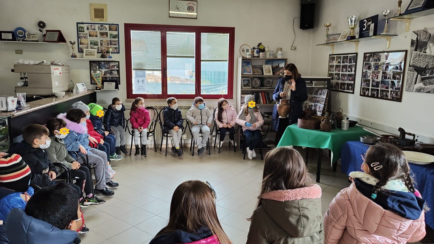 Il secondo laboratorio per i bambini delle seconde classi è stato incentrato in un percorso naturalistico eco sostenibile dove le erbe officinali spontanee e non, la loro conoscenza, le loro proprietà terapeutiche, il loro utilizzo in medicina, le loro coltivazioni, i benefici sulla salute, l’utilizzo negli infusi, per arricchire e aromatizzare ricette culinarie. Sono stati consegnati agli allegri studenti vasetti con terriccio bio dove hanno piantato tanti semini e piantine ( aglio, fave, rosmarino, salvia, origano, fagioli, piselli, insalate piselli, basilico, finocchio,ecc) che cureranno personalmente a casa. Inoltre il Centro sociale aveva allestito una bellissima mostra di oggetti antichi legati alle nostre tradizioni contadine e a oggetti non più in uso che evocando il fascino del tempo passato hanno catturato l’interesse di tutti, descritti con grande passione dai nonni che hanno commentato e impreziosito con il racconto di episodi vissuti da loro stessi in riferimento a questi oggetti dismessi ma di grande interesse storico.