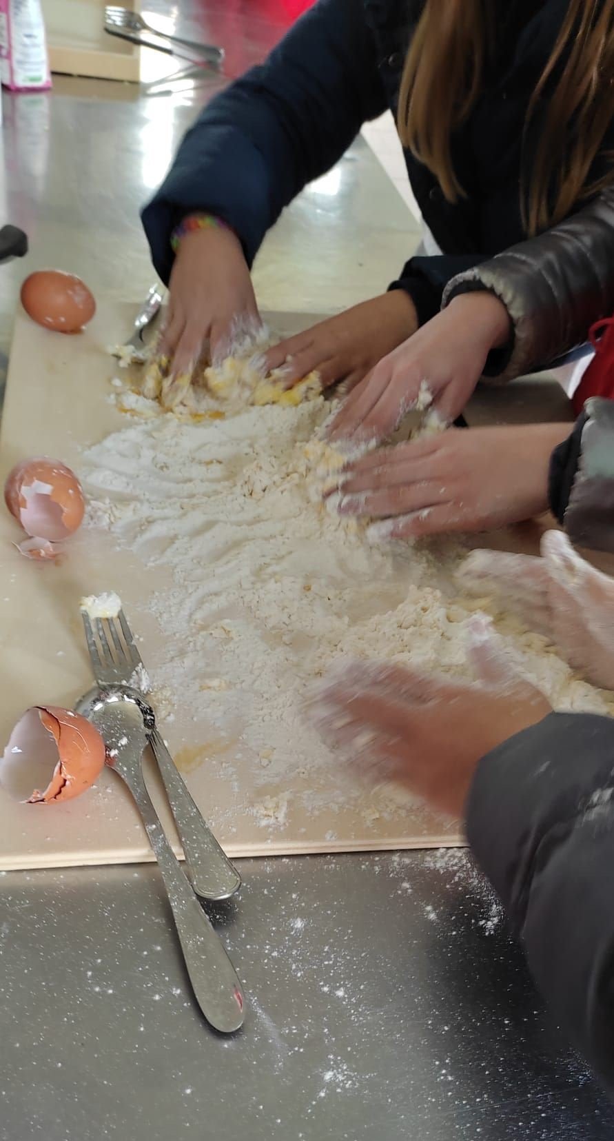 Il Centro Sociale di Campiglione, con il patrocinio del Comune di Bastia Umbra, Settore servizi alla persona e Politiche Scolastiche, mercoledì 17 novembre si è animato con la presenza degli alunni/e della scuola primaria Fifi, con due seconde e due quinte accompagnate dalle loro insegnanti per partecipare ad una iniziativa inconsueta , curata da un gruppo di Nonni frequentanti il Centro sociale che hanno attivato due laboratori esperienziali. Uno di cucina della tradizione, con gli studenti delle quinte, nell’ ampia cucina attrezzatissima del centro sociale prendendo in considerazione le ricette delle Nonne, ricette tipiche umbre. Tanti nonni e nonne volontarie hanno insegnato ai bambini come si fa una torta al testo, come realizzare i ravioli, come fare la pasta all’uovo, come utilizzare il tipico rasagnolo, come impastare con le mani i biscottini a ciambella con l’anice, come fare gli gnocchi di patate, il tutto intercalato da testimonianze dirette dei nonni che hanno incantato gli studenti con i racconti della loro infanzia lontana ma sempre viva nella memoria. Gli allievi dagli occhi curiosi e gioiosi, molto attenti ed entusiasti per l’iniziativa di conoscenza delle ricette antiche e dell’impegno manipolativo hanno vissuto l’esperienza come un gioco didattico e creativo.