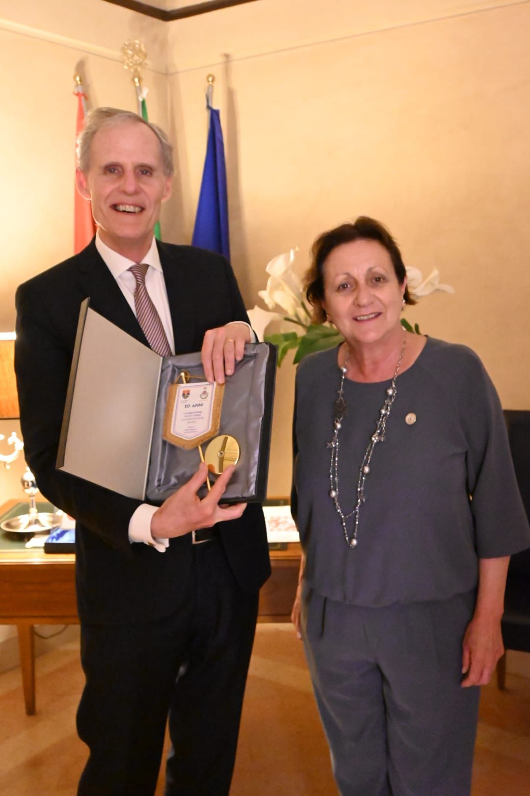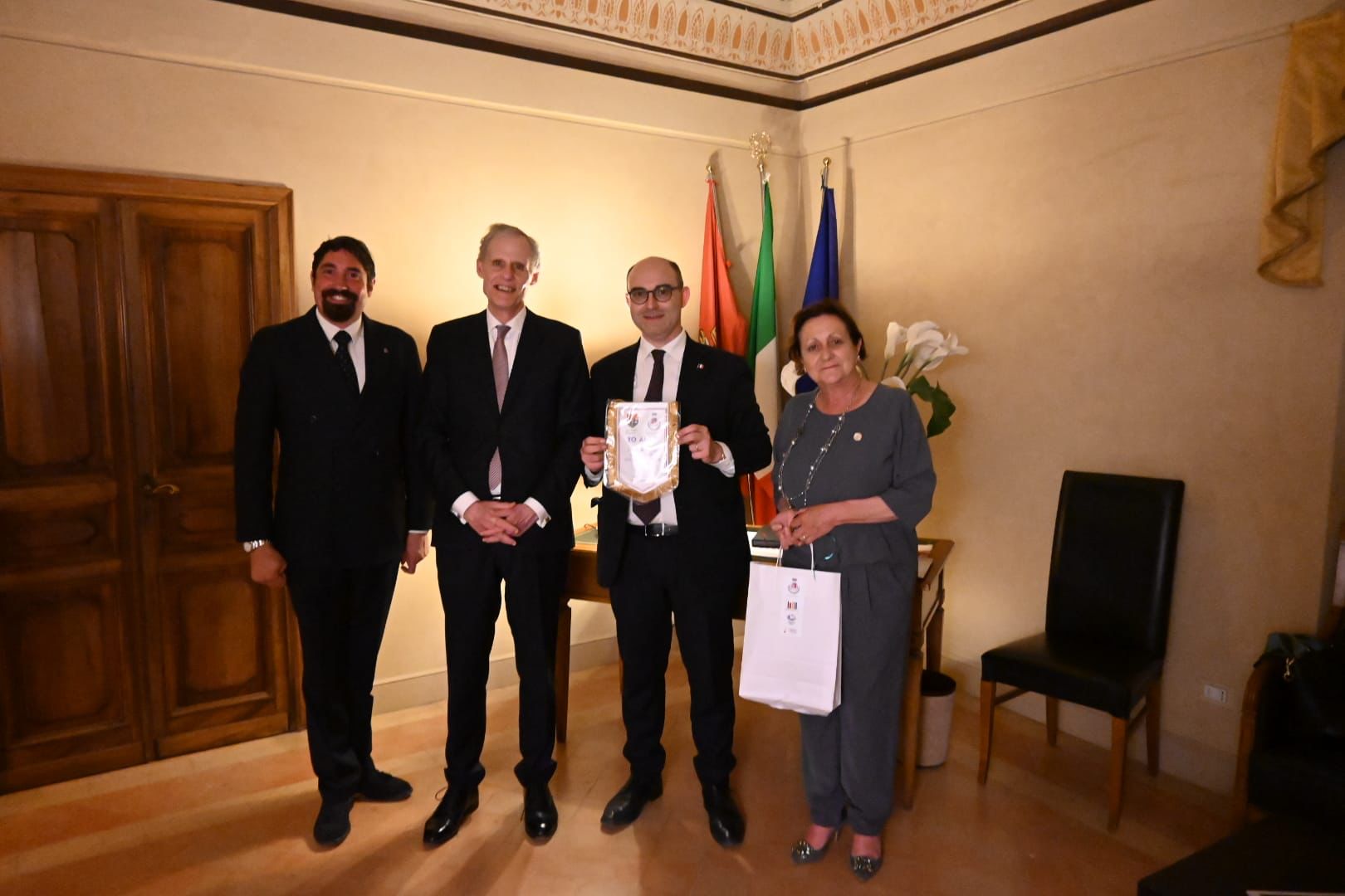 Abbiamo avuto altresì l’opportunità di esporre le molteplici attività ed iniziative che contraddistinguono la comunità bastiola, sempre attiva, vivace, pragmatica come lo è il popolo francese. Ci siamo permessi, vista la spiccata affabilità dell’Ambasciatore, di invitarlo alle prossime manifestazioni, quali il Palio de San Michele e Eurochocolate, ne saremmo veramente onorati non solo per l’alta carica che riveste ma anche per la sensibilità e la profondità d’animo che ci ha manifestato. Il Console onorario a cui vanno i nostri più sentiti ringraziamenti si è reso promotore di iniziative volte a sostenere e rafforzare l’unione dei due comuni gemellati”.