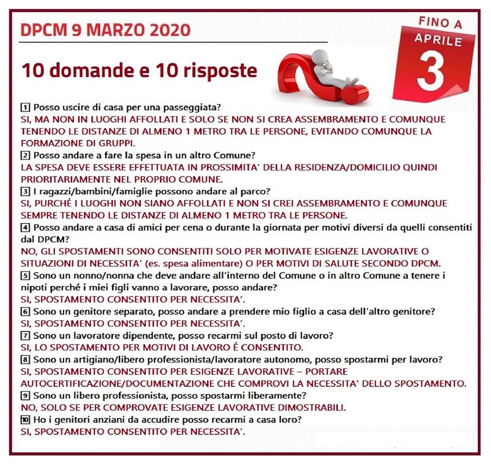 In vigore dal giorno 10 marzo al giorno 3 aprile
