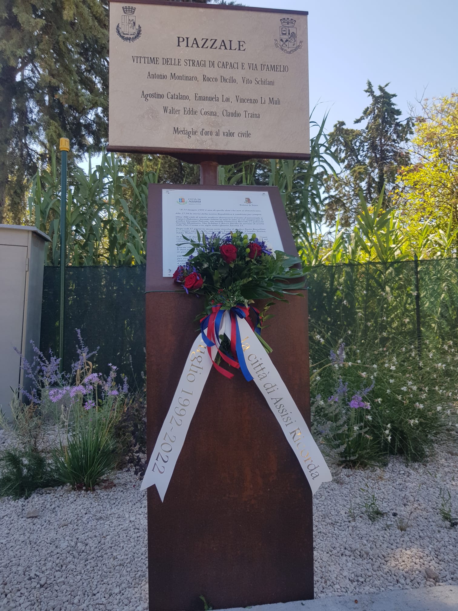 L’amministrazione comunale di Assisi ha reso omaggio a Paolo Borsellino con la deposizione di un omaggio floreale presso i piazzali intitolato al giudice massacrato dalla mafia e alla sua scorta il 19 luglio di trent’anni fa.