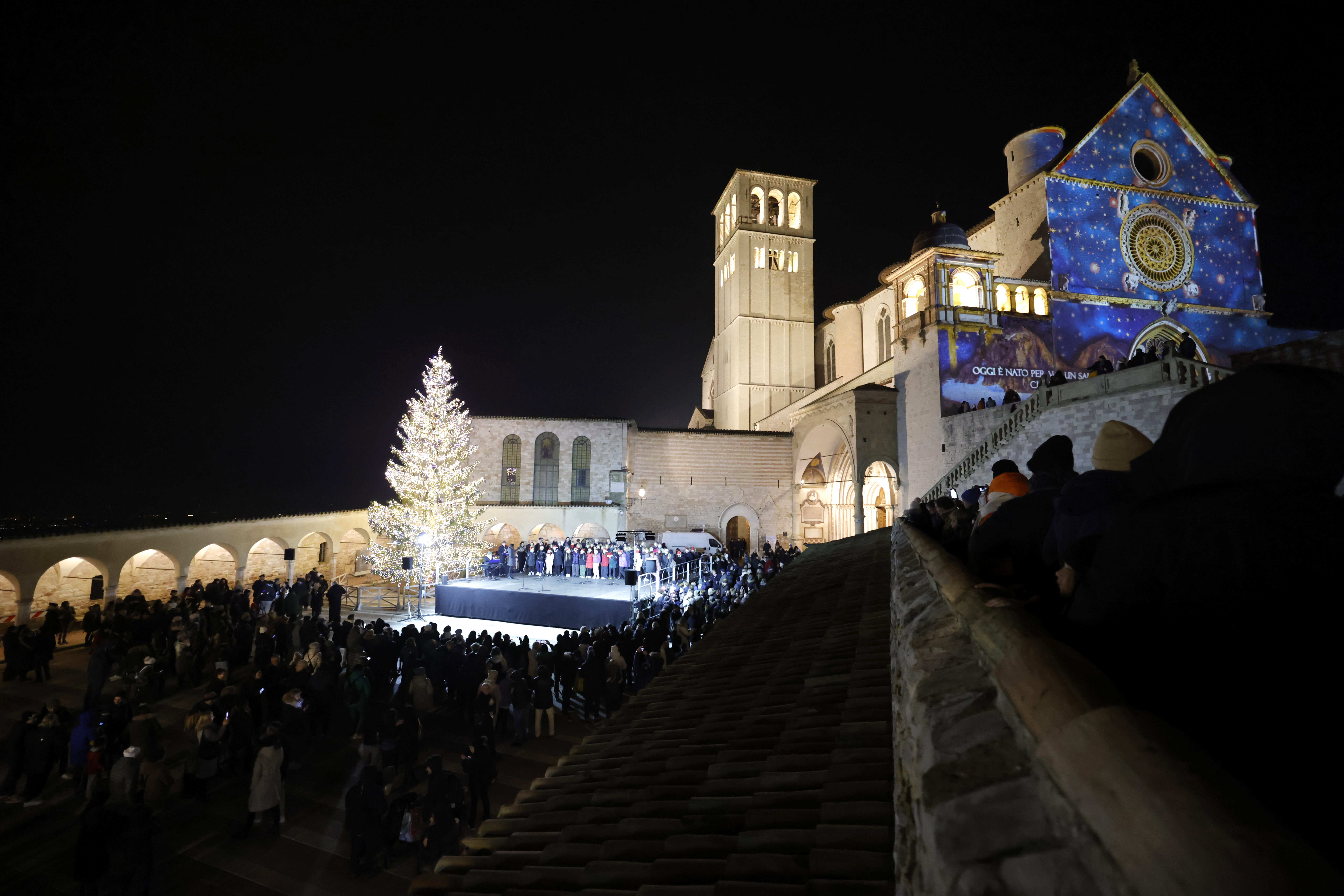 Alle 18.10: inizio della cerimonia di accensione dell’albero di Natale e del videomapping sulla facciata della chiesa superiore con benedizione del presepe.
