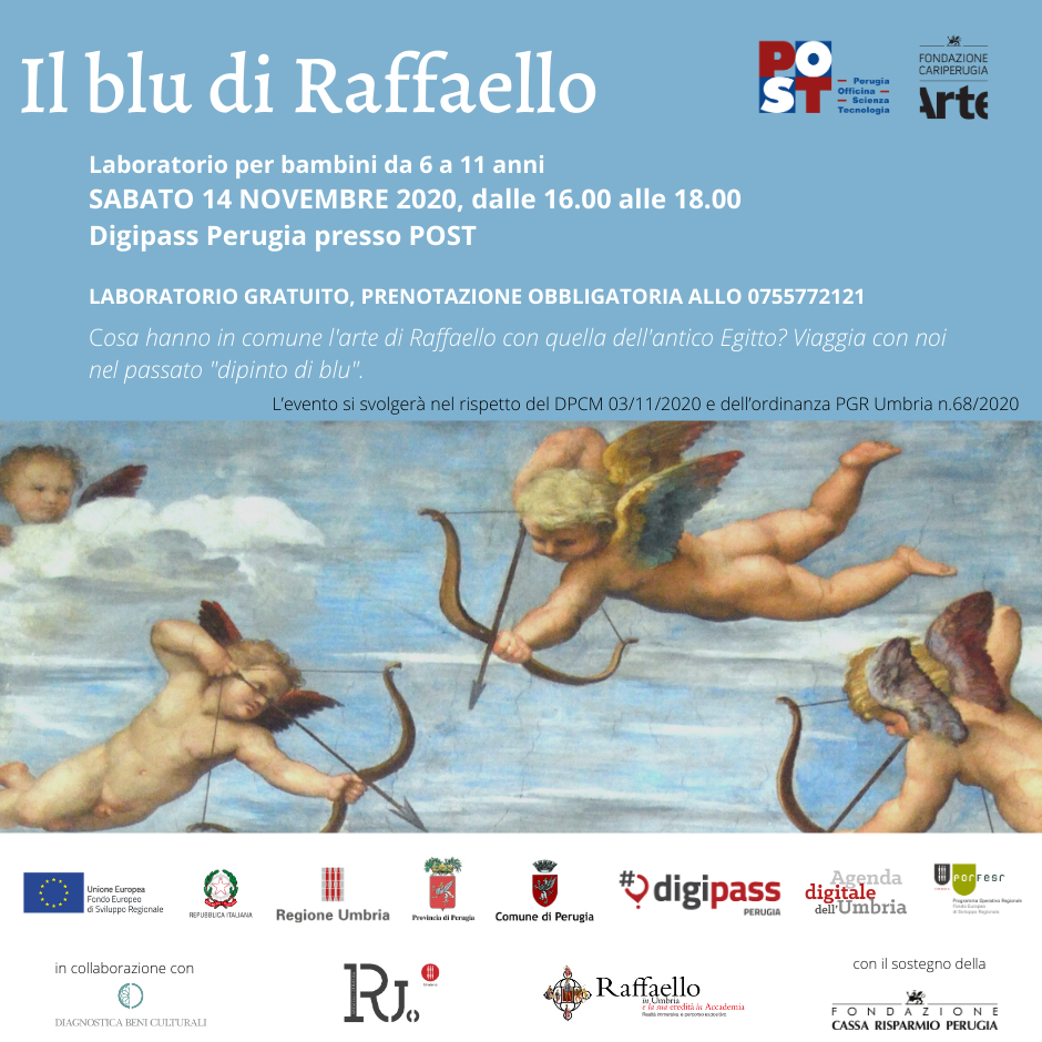 Perugia, 13 novembre 2020 – Cosa hanno in comune l’arte di Raffaello con quella dell’antico Egitto? Il mistero del “blu egizio”, la sua origine e le sue complesse tecniche di fabbricazione sono al centro di due iniziative organizzate dalla Fondazione CariPerugia Arte e dal Post – Museo della Scienza di Perugia in collaborazione con il Laboratorio di Diagnostica per i Beni Culturali di Spoleto e il Digipass Perugia in occasione del cinquecentenario dalla scomparsa del maestro urbinate. Due momenti dedicati all’arte, connessa alla ricerca scientifica, in una fase in cui musei, mostre ed eventi culturali hanno subito lo stop dovuto all’emergenza sanitaria.