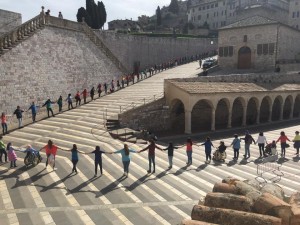 In qualità di Presidente della Conferenza di Zona Sociale 3, rivolgo un sincero ringraziamento al Signor Prefetto di Perugia Raffaele Cannizzaro, che ha gentilmente concesso l’’autorizzazione ad attraversare col Girotondo Piazza San Francesco, al Commissario Francesca Domenica Di Luca, al Comandante Antonio Gentili e a tutti coloro che hanno collaborato – a partire dal mese di novembre 2015 – e collaboreranno per la perfetta riuscita del Progetto: Ufficio di Piano e Polizia Municipale della Città di Assisi, Sacro Convento di San Francesco, Ass.ne SONOXSONA, Ass.ne CIDIS onlus, Ass.ne d’arte musicale “I Mastri Musici”, Bande Musicali di Cannara e Rivotorto, Scuola di Musica comunale di Bastia Umbra (Ass.ne musicale FareMusica), CESVOL””.” Il brano, oltre a rappresentare il “cuore” dell’’intero progetto – continua l’Assessore MOROSI – costituirà anche la sigla del “Festival Internazionale della Felicità Città di Assisi”, kermesse che ha avuto nell’estate 2015 la prima grande edizione. L’’Inno “”Girotondo”” è stato composto appositamente dal Maestro Mastrini – che segue anche la supervisione artistica del progetto – ma vede dunque la collaborazione di “500 mani” nella stesura definitiva del testo. Il Girotondo entrerà nella Storia della Città Serafica! Il videoclip con le riprese del Girotondo verrà ufficialmente presentato domenica 15 maggio, dalla splendida cornice del Sagrato della Basilica di San Francesco, dove i bambini, accompagnati dalle Bande Musicali, si esibiranno dal vivo. Martedì 12 Aprile la Città di Assisi è stata teatro del grande Girotondo “Le Armonie della Felicità”: quasi 2000 studenti (Liceo Sesto Properzio”; IPSSAR; Convitto Nazionale “Principe di Napoli”, Istituto Comprensivo Assisi 1; Istituto Comprensivo per Ciechi), tenendosi per mano, hanno formato un grande anello.” Dopo la fase di “formazione”- ha dichiarato l’Assessore MOROSI – i bambini coinvolti, coadiuvati da Insegnanti e dal Maestro Ragni, si sono cimentati nella stesura dei testi, un’esperienza emozionante e fortemente coinvolgente”.”Con la partecipazione di 12 classi quarte di 6 diversi Plessi scolastici e richiamandosi allo Spirito di Assisi e più in generale ai principi universali di accoglienza e pace legati alla figura di San Francesco, il progetto promuove e sviluppa l’’inclusione interculturale affinché i giovani Cittadini, accompagnati da Insegnanti, Famiglie, Istituzioni e dall’’intera Comunità di appartenenza, possano diventare Costruttori di Pace. Per l’’anno scolastico in corso la Zona Sociale 3 (Comuni ASSISI, Bastia Umbra Bettona Cannara e Valfabbrica) sta collaborando con alcune Scuole Primarie del Territorio per il progetto di Cittadinanza Attiva “LE ARMONIE DELLA FELICITA’ – voci, risonanze e accordi dell’inclusione interculturale”.” Mentre i bambini sono istintivamente portati a trattare alla pari i coetanei stranieri, da parte degli adulti la convivenza tra culture diverse, se non accompagnata da conoscenza, viene vissuta con paura e pregiudizio, generando sentimenti di discriminazione”. Questa è la riflessione di Serena MOROSI, Assessore alle Politiche Sociali e Cultura della Città di Assisi, Comune Capofila della Zona Sociale 3 dell’Umbria. Nel contesto dell’Umbria e della Zona Sociale dell’Assisano in particolare, a partire dagli anni ’90 si è verificato un costante aumento della presenza di immigrati extracomunitari e stranieri, con percentuali superiori alla media nazionale.