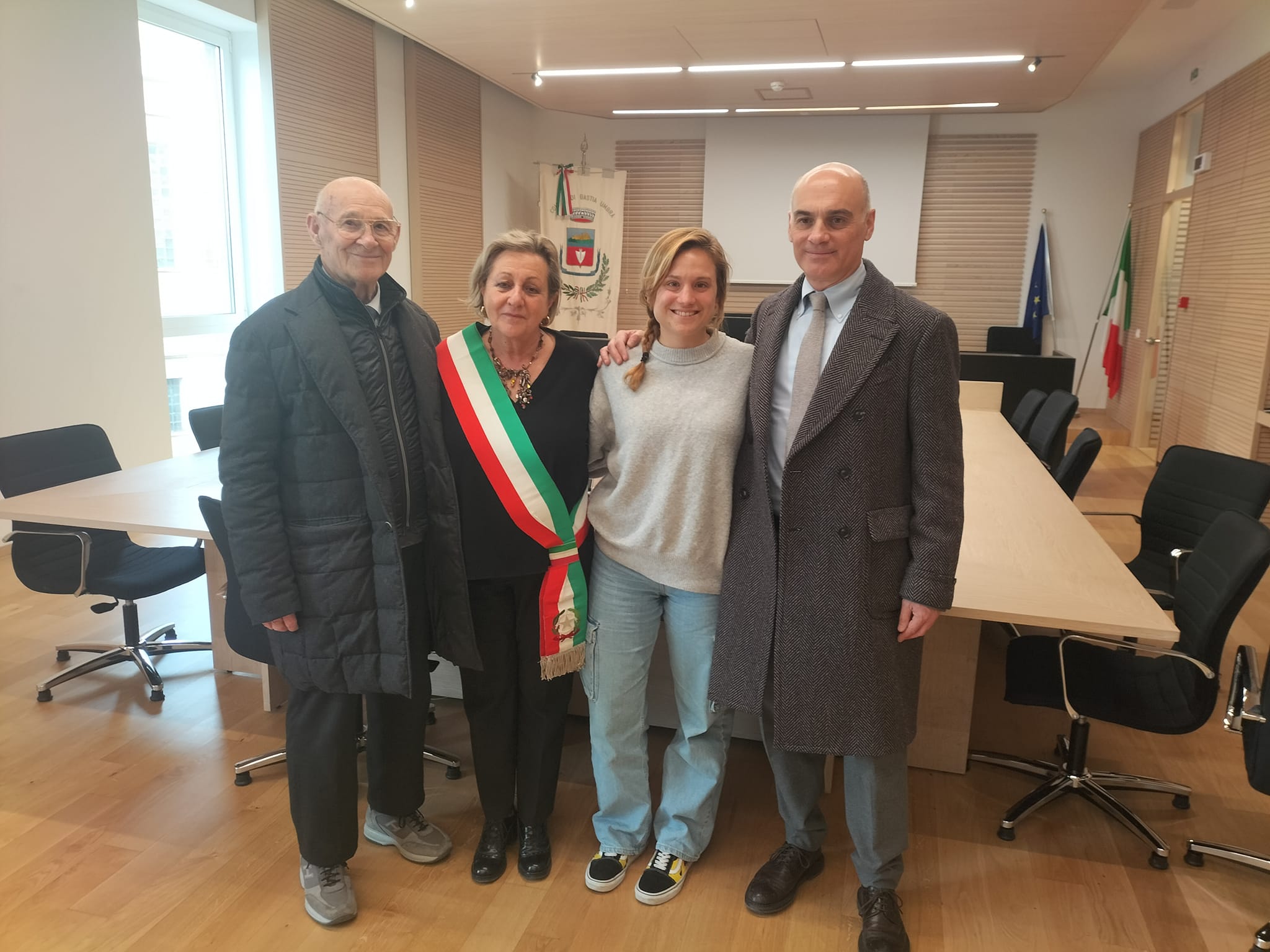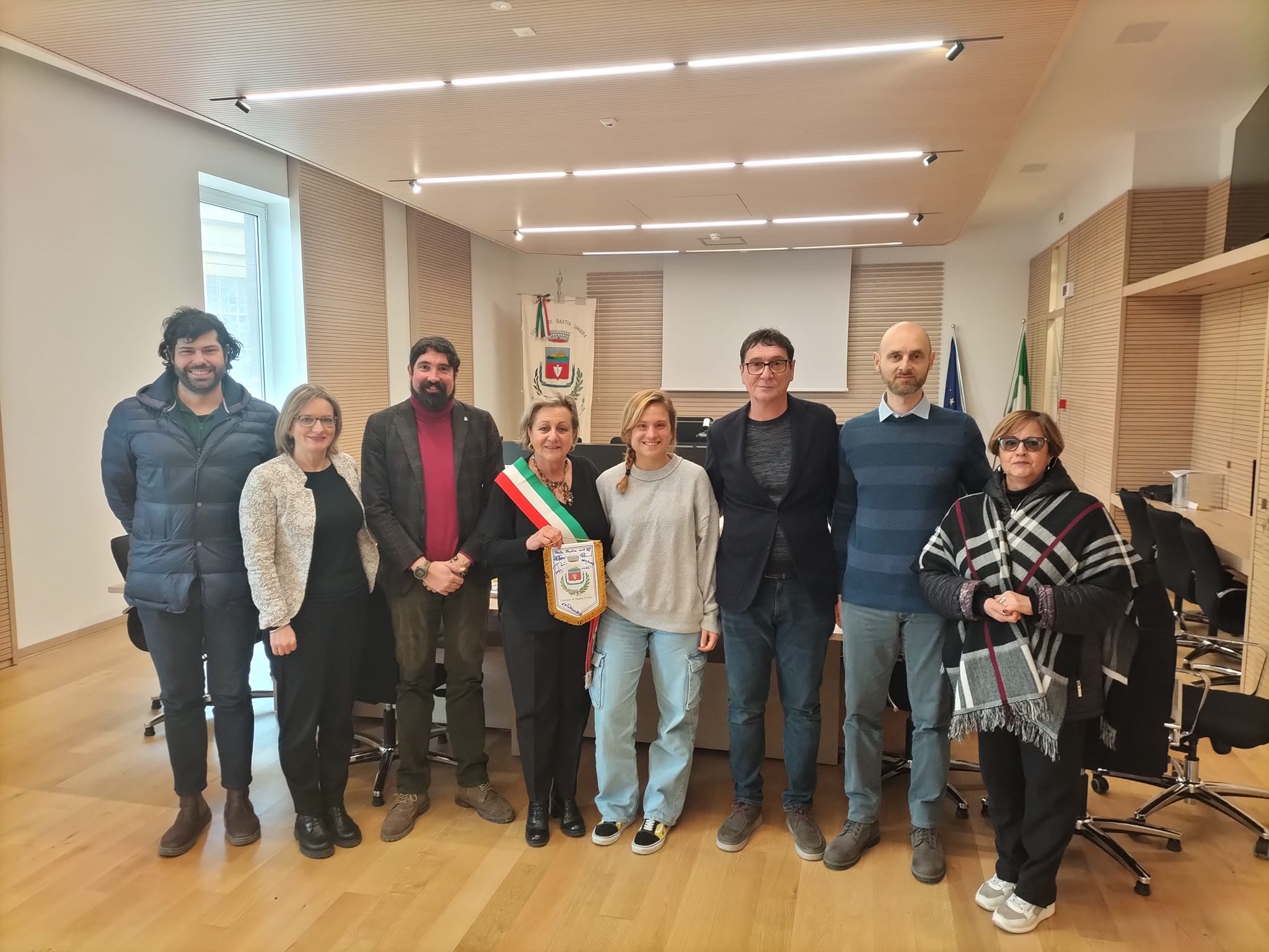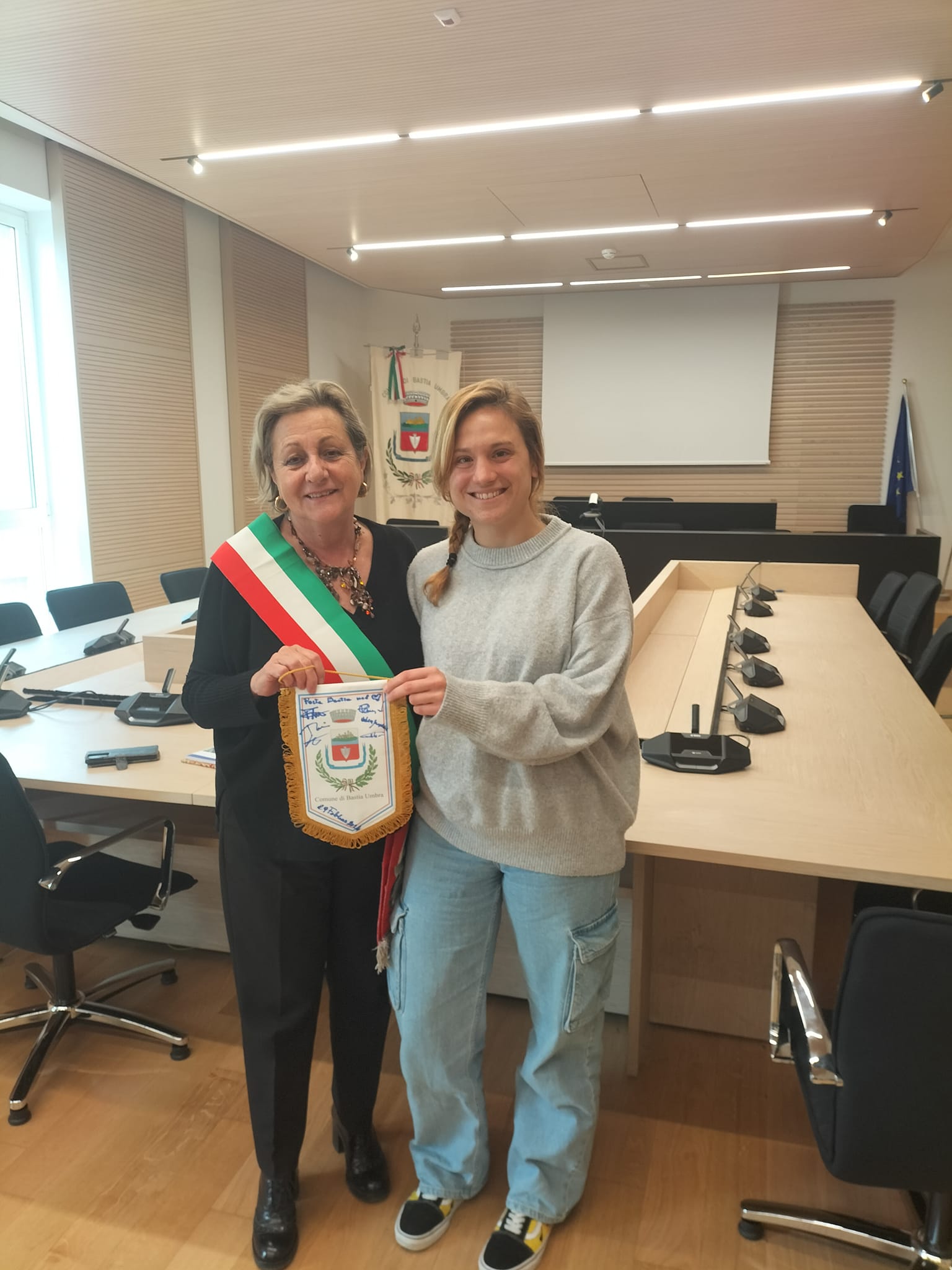 E’ il Sindaco Paola Lungarotti a raccontare l’emozione dell’incontro con Sofia, “Oggi abbiamo avuto l’ onore di ricevere in Municipio la visita di Sofia Fatigoni, classe 1993, eccellenza dell’ astrofisica mondiale e orgoglio della città di Bastia Umbra da cui la sua famiglia proviene. Le abbiamo consegnato il gagliardetto con lo stemma del nostro Comune con una dedica da parte di tutti noi, a nome della città di Bastia Umbra, con l’auspicio  che Sofia possa portare con sé sempre il ricordo delle sue origini, della nostra città”.