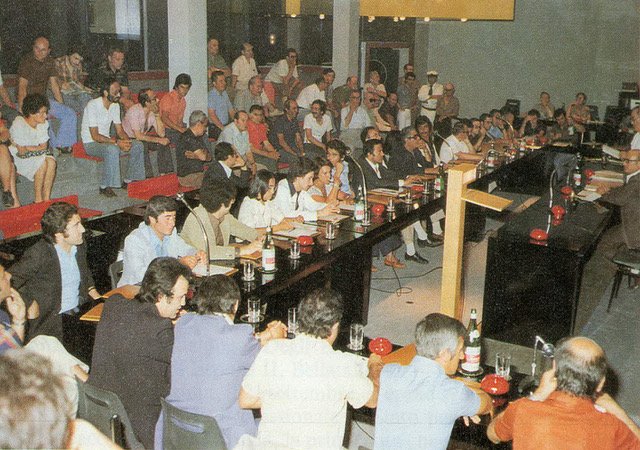 Era sabato 13 agosto 1975 quando fu inaugurata una sala consiliare, disegnata dal noto architetto prof. Giancarlo Leoncilli Massi (1938-2007), docente universitario di origini spoletine e attivo a Bastia nella progettazione di altre opere pubbliche. Nello stesso pomeriggio si tenne anche l’insediamento del nuovo consiglio comunale (come si vede nella foto scattata da Rino Casula), salito da venti a trenta rappresentanti dopo le elezioni del 15-16 giugno. Presiedeva l’on. Ludovico Maschiella, consigliere anziano, presente il sindaco uscente Alberto La Volpe, poi rieletto dall’assemblea.