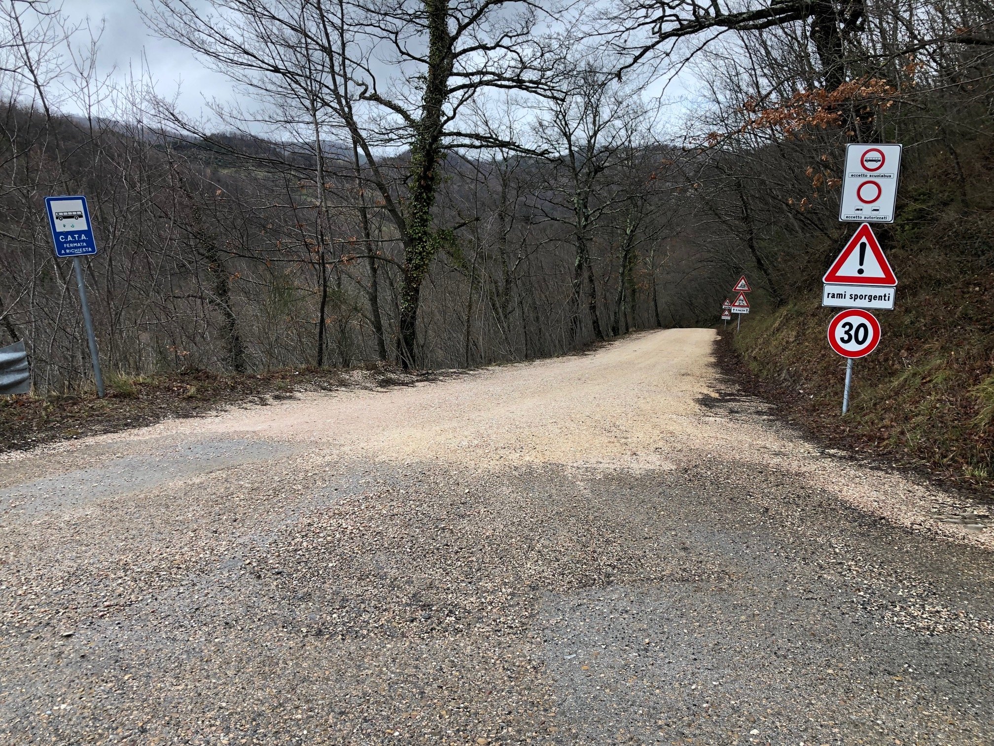 Stesso tipo di intervento è in corso sulla Strada Palombara fino al vocabolo Casaccio nella frazione di Santa Maria di Lignano, al confine con il comune di Nocera Umbra.