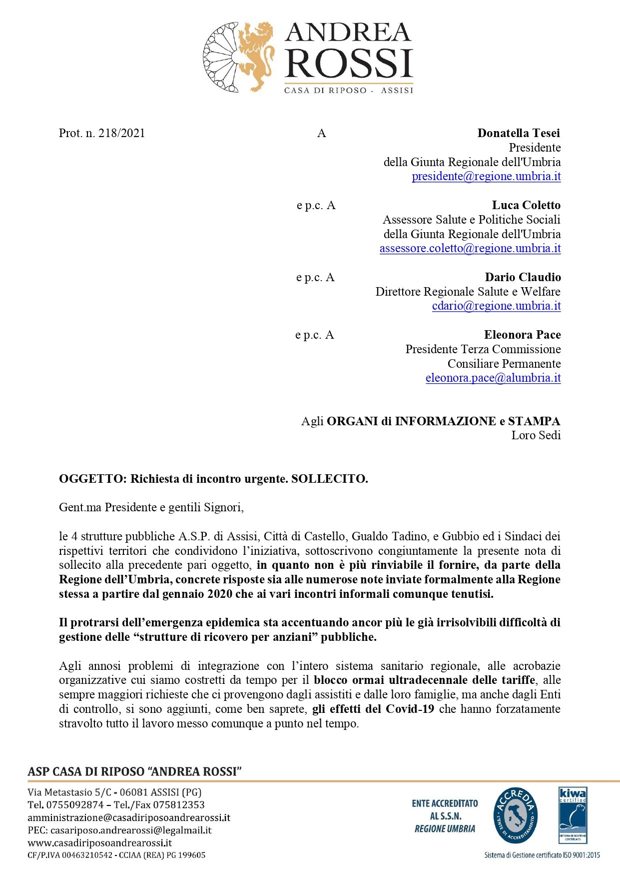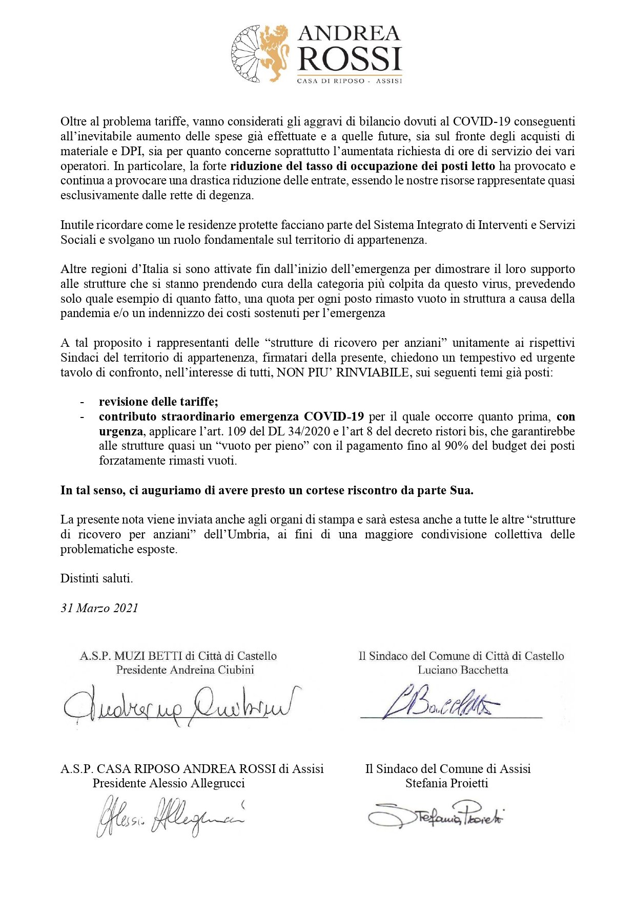 Le 4 strutture pubbliche A.S.P. Case di Riposo di Assisi, Città di Castello, Gualdo Tadino, e Gubbio ed i Sindaci dei rispettivi territori hanno trasmesso alla regione dell’Umbria una richiesta di incontro urgente.