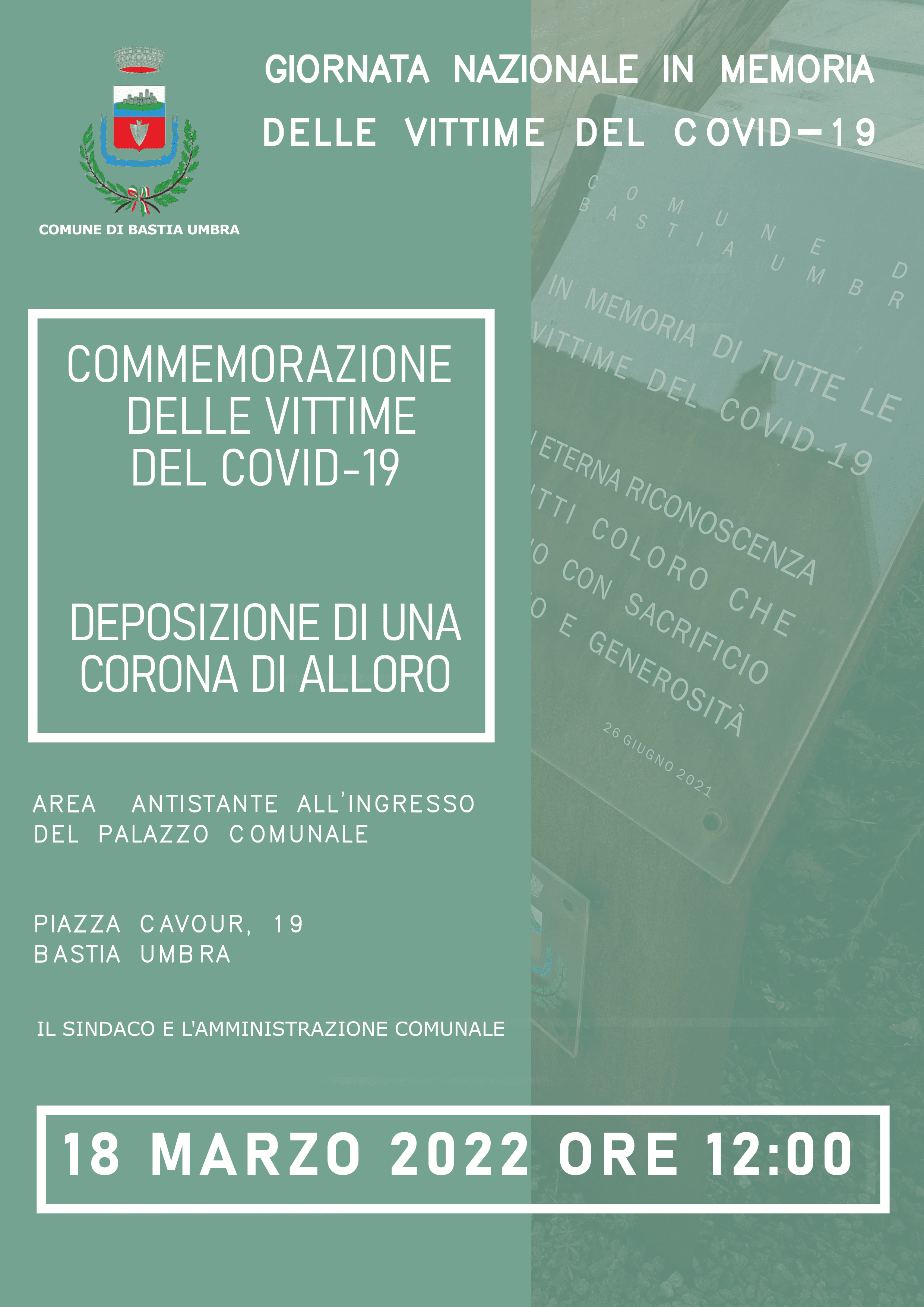 Quel giorno si terrà una commemorazione di tutte le vittime del Covid-19 con la deposizione di una corona di alloro nell’area antistante all’ingresso del palazzo comunale, in Piazza Cavour, 19, dove è stata posizionata il 26 Giugno 2021 una targa dedicata al ricordo di tutti coloro che hanno perso la vita a causa della pandemia e a tutti coloro che lottano con sacrificio e generosità mettendosi a disposizione della Comunità. La cerimonia si svolgerà alle ore 12.00.