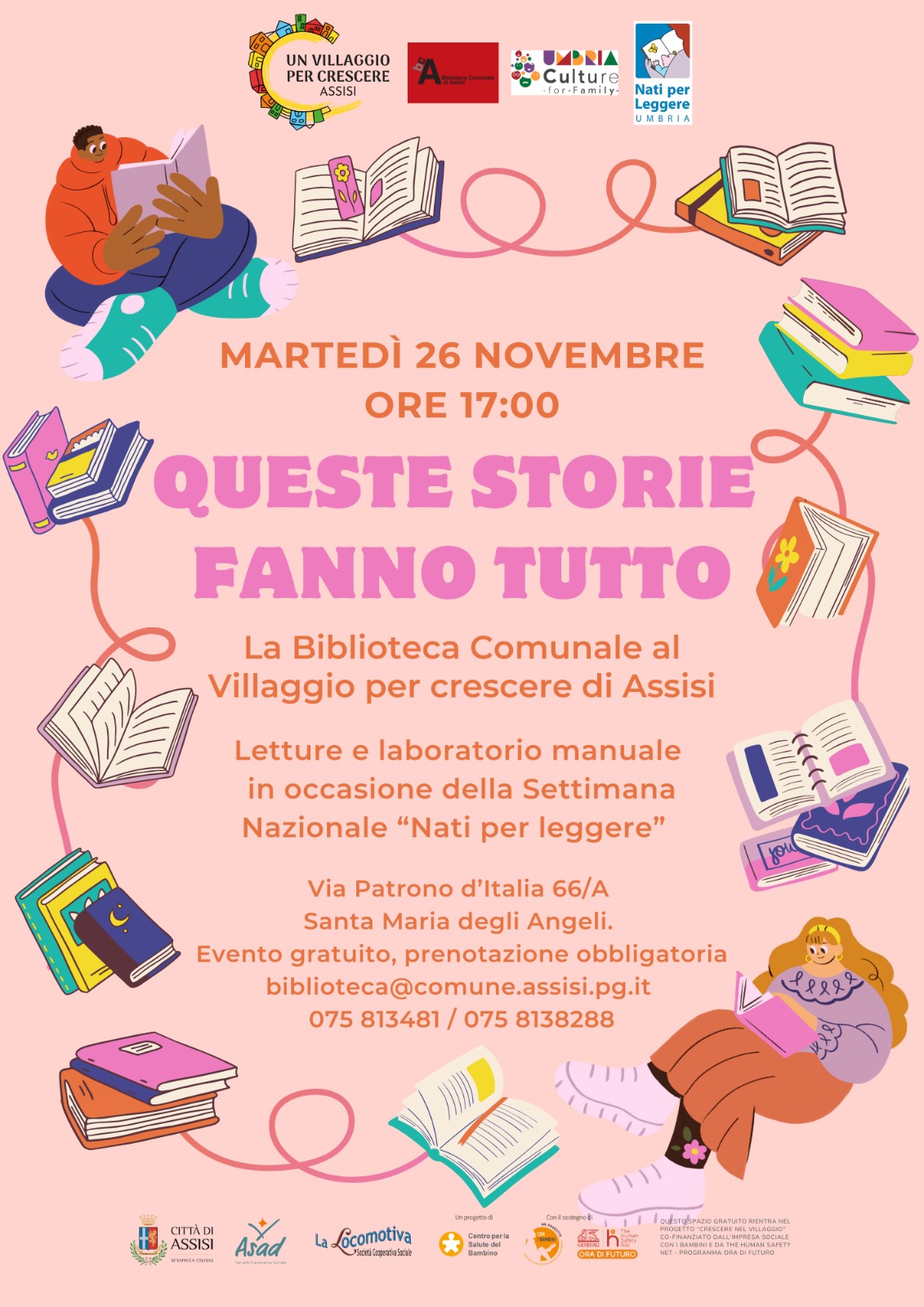 In occasione della conclusione della settimana nazionale Nati per Leggere, la Biblioteca Comunale di Assisi invita tutte e tutti all’appuntamento in collaborazione con Un Villaggio per Crescere di Assisi “Queste storie fanno tutto”.