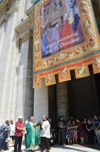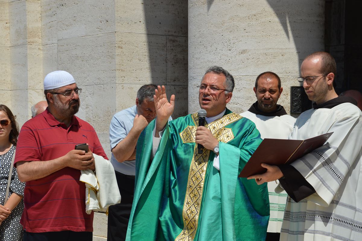 Al termine della santa Messa, il presidente della celebrazione, l’Imam e tutti i fedeli presenti, si sono recati all’ingresso della Basilica per la benedizione della nuova rampa semicircolare installata in occasione dell’VIII Centenario del Perdono riportante lo stemma di Papa Francesco, che il prossimo 4 agosto varcherà la soglia della Basilica e della Porziuncola, facendosi lui stesso pellegrino del Perdono.