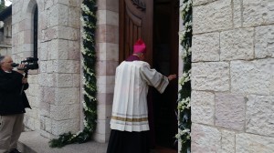 Aderendo all’invito del Santo Padre, mettendoci alla scuola del Poverello, abbiamo aperto la porta santa della Cattedrale. È il segno di Cristo. L’abbiamo voluta così, come una porta “trasparente”, che fa guardare lontano, in entrata e in uscita. Non è la porta che immette in un luogo protetto, ma la porta che fa immergere nell’amore. È la porta che conduce al cuore di Cristo, e ci invia poi dove Cristo ci da appuntamento nei suoi poveri.