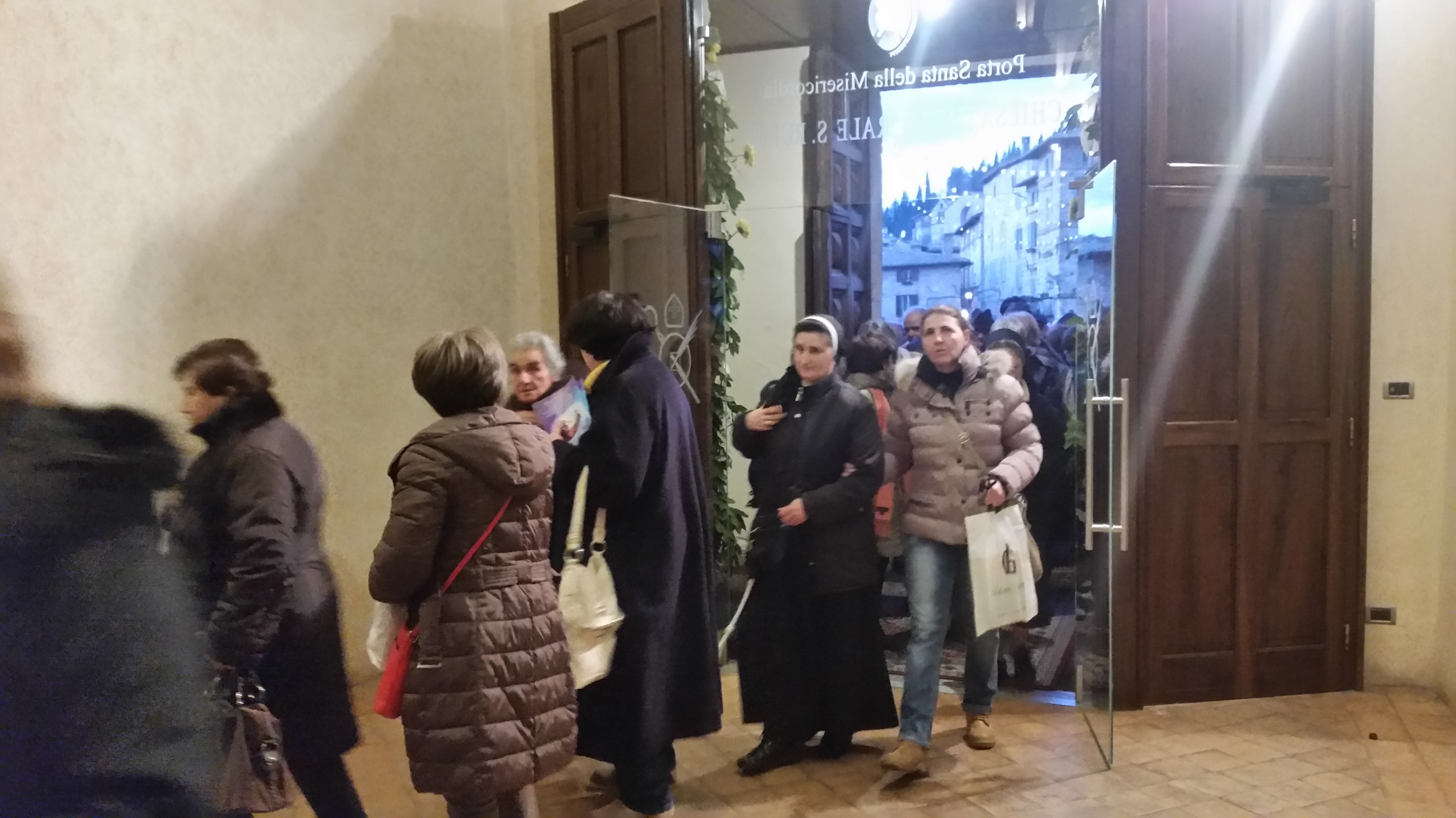 Cari fratelli e sorelle, papa Francesco, che noi ci auguriamo voglia farci ancora dono della sua visita nel corso di questo anno speciale, desidera una Chiesa che sia un’oasi di misericordia. Per una provvidenziale coincidenza, celebreremo quest’anno l’VIII centenario dell’indulgenza della Porziuncola e il trentesimo anniversario dello “spirito di Assisi”. Due volti della misericordia, che ha in Cristo la sua sorgente. Con l’aiuto di Maria, Madre di misericordia, lasciamoci travolgere da quest’onda di amore, per trovare la pace e la gioia del cuore. Buon Anno Santo a tutti!