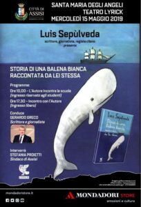 Assisi ospiterà mercoledì 15 maggio, al Teatro Lyrick di Santa Maria degli Angeli, un evento culturale di grande rilievo: lo scrittore cileno Luis Sepùlveda presenterà il suo ultimo libro “Storia di una balena bianca raccontata da lei stessa”.