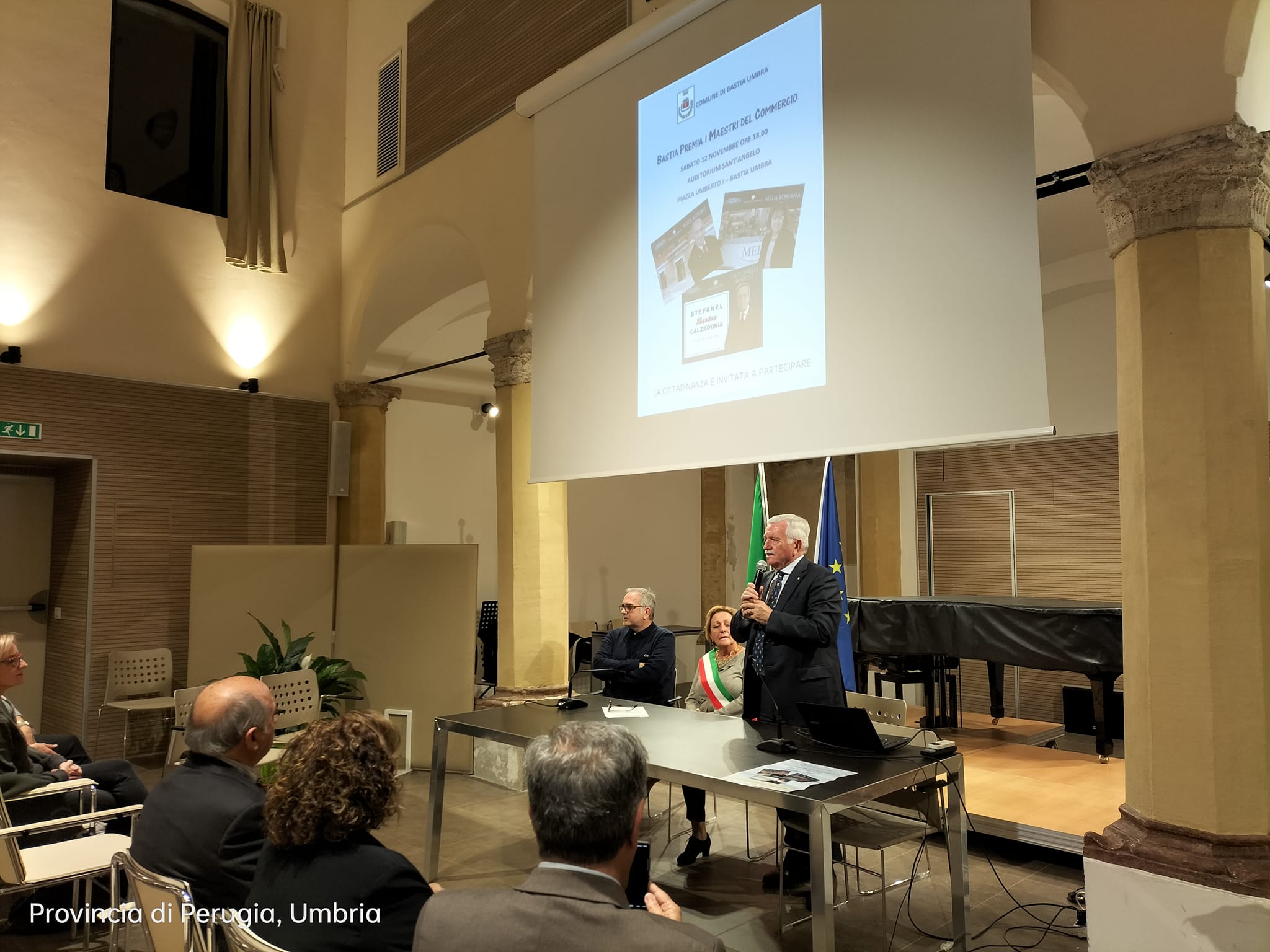“Ci ha onorati della sua presenza il Presidente dell’Ass. Confcommercio regionale, l’ Ing Giorgio Mencaroni, che avevamo invitato a partecipare e che aveva consegnato loro recentemente a Perugia l’ambito premio. Insieme abbiamo ripercorso le tappe più significative dei tre commercianti bastioli nel mondo del commercio, storie di famiglia che le foto d’ epoca hanno saputo valorizzare con tanta emozione. Grazie a tutti i presenti, a nome della comunità di Bastia Umbra, – così il Sindaco Lungarotti nel suo intervento – per aver contribuito con la vostra attività di lunga data a far crescere il nome della nostra città. Obiettivo comune e condiviso è fare squadra, unire le forze e le risorse per valorizzare il patrimonio imprenditoriale di Bastia Umbra e renderlo esempio e modello di coesione e collaborazione tra soggetti che amano la propria comunità.