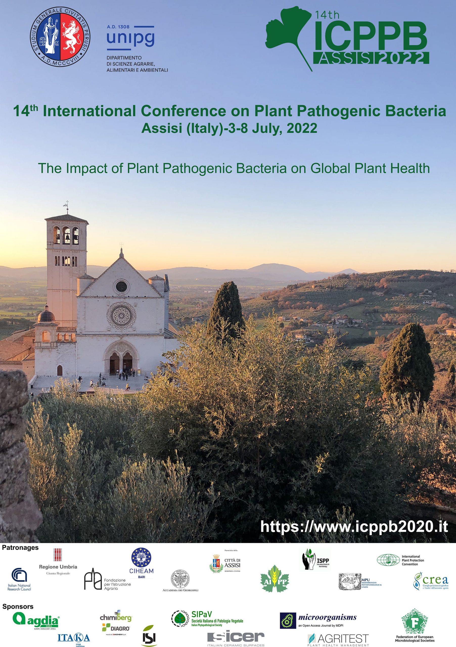 Il Prof. Roberto Buonaurio e la Prof.ssa Chiaraluce Moretti del Dipartimento di Scienze Agrarie, Alimentari e Ambientali (DSA3) dell’Università degli Studi di Perugia stanno organizzando la 14th International Conference on Plant Pathogenic Bacteria (14th ICPPB) che avrà luogo ad Assisi (PG) dal 3 all’8 luglio 2022 ed ha come tema l’impatto dei batteri fitopatogeni sulla salute delle piante a livello globale.