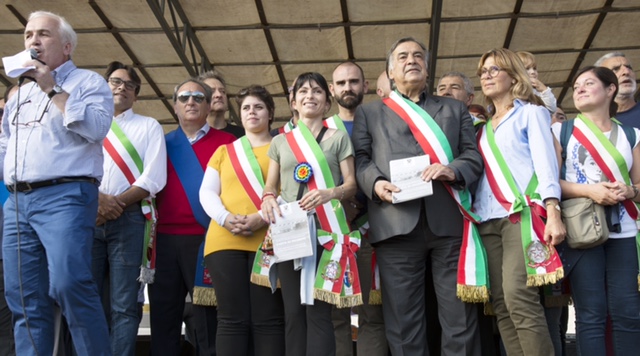 500 pullman giunti ad Assisi da ogni parte d’Italia con più di 50.000 persone. Numeri da record per la Marcia della Pace di ieri che ha visto sfilare migliaia di persone in cammino per lanciare un forte grido di Pace per dire ‘mai più guerra’. Tantissime le amministrazioni presenti e provenienti da tutta Italia, una parata di fasce tricolore che ha testimoniato il bisogno di ripartire nel costruire nuovi percorsi di pace proprio da chi, nello svolgimento del proprio ruolo istituzionale, ha la capacità di indirizzare l’operato di governo al raggiungimento di azioni comuni e condivise di tutela e difesa dei più fragili e dei più poveri. Numerosa poi la presenza dell’Amministrazione di Assisi, la città meta della Marcia, nella persona del Sindaco Proietti, degli Assessori e di alcuni Consiglieri che, in qualità di rappresentanti della Città della Pace, hanno tenuto ad essere presenti e testimoni di una città che è in prima linea nella costruzione del dialogo di Pace. Uno su tutti il Sindaco Proietti che ha affrontato il lungo percorso della Marcia e portato il suo saluto a tutti i presenti giunti a destinazione presso la Rocca Maggiore di Assisi “E’ bellissimo vedervi in tantissimi qui, pieni di colori e di voglia di dire ‘mai più guerra’- ha dichiarato a gran voce dal palco – E’ un popolo meraviglioso quello della Pace. Vi ringrazio a nome mio, a nome di tutta