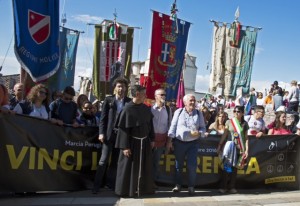 l’Amministrazione, della Giunta e dei consiglieri, a nome della Città. In tanti come mai prima abbiamo marciato insieme a voi, insieme ai tanti giovani e a tutte le generazioni presenti, alle amministrazioni e a chi vuole la Pace a tutti i costi; Assisi è la vostra Città, è la Città del Popolo della Pace, Assisi è la Città della Pace e voi lo dimostrate qui, oggi, insieme a noi!”. Grande soddisfazione poi del Sindaco per la riuscita di un evento di così grande portata che ha richiesto giorni di preparazione e una macchina operativa che ha nuovamente confermato la sua incredibile efficienza “Tutto ha funzionato alla perfezione in una situazione di non facile gestione se solo pensiamo al grande numero di persone presenti e alla necessità di garantire comunque a tutti i cittadini lo svolgimento della propria quotidianità.