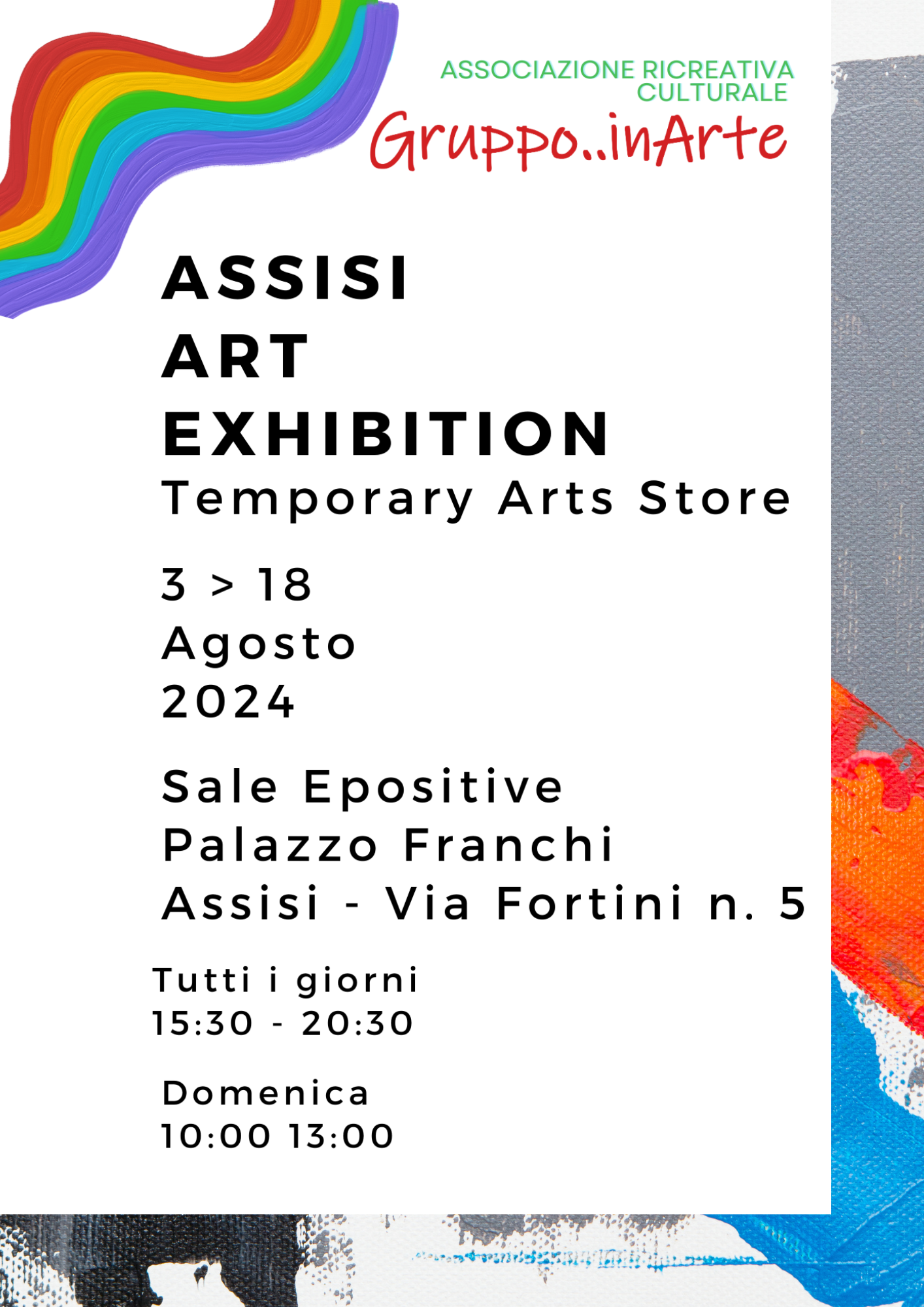 Il prossimo sarà Assisi Art Exhibition, Temporary Arts Store dal 3 al 18 agosto ad Assisi che segue il nuovo evento Bastia Arts Exhibition realizzato in occasione della notte bianca di Bastia Umbra in collaborazione con il Comune di Bastia Umbra, la Pro Loco di Bastia Umbra e l’Associazione Amici Arte – Ciao Umbria.