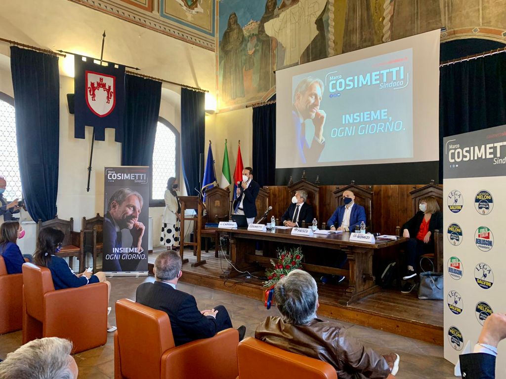 Dopo di lui, l’onorevole Emanuele Prisco, coordinatore provinciale di Fratelli d’Italia: “Assisi è un Comune chiave in Umbria e in Italia. Il centrodestra si è ritrovato dopo il passo falso di cinque anni fa e Fratelli d’Italia sarà molto presente in questa campagna elettorale. Alla città serve un cambio di passo: per questo abbiamo scelto un manager che sappia gestire i conti della città, l’indebitamente creato dall’attuale amministrazione, il cui rischio è quello di un innalzamento delle tasse e di una riduzione dei servizi”, ha dichiarato Prisco. La senatrice Fiammetta Modena, responsabile regionale degli enti locali di Forza Italia, ha invece sottolineato come “Cosimetti interpreta a pieno l’uomo del fare tipico del centrodestra. Forza Italia lo vuole come guida della città in un momento particolarmente delicato, dove un sindaco porta sulle sue spalle una pietra molto pesante in nome del bene della sua collettività”. Presenti in platea i consiglieri regionali Stefano Pastorelli, Valerio Mancini e Francesca Peppucci (Lega), Marco Squarta ed Eleonora Pace (Fratelli d’Italia), i sindaci di Bastia Umbra, Cannara e Valfabbrica, numerosi consiglieri comunali assisani e altri esponenti politici e istituzionali dei partiti della coalizione.