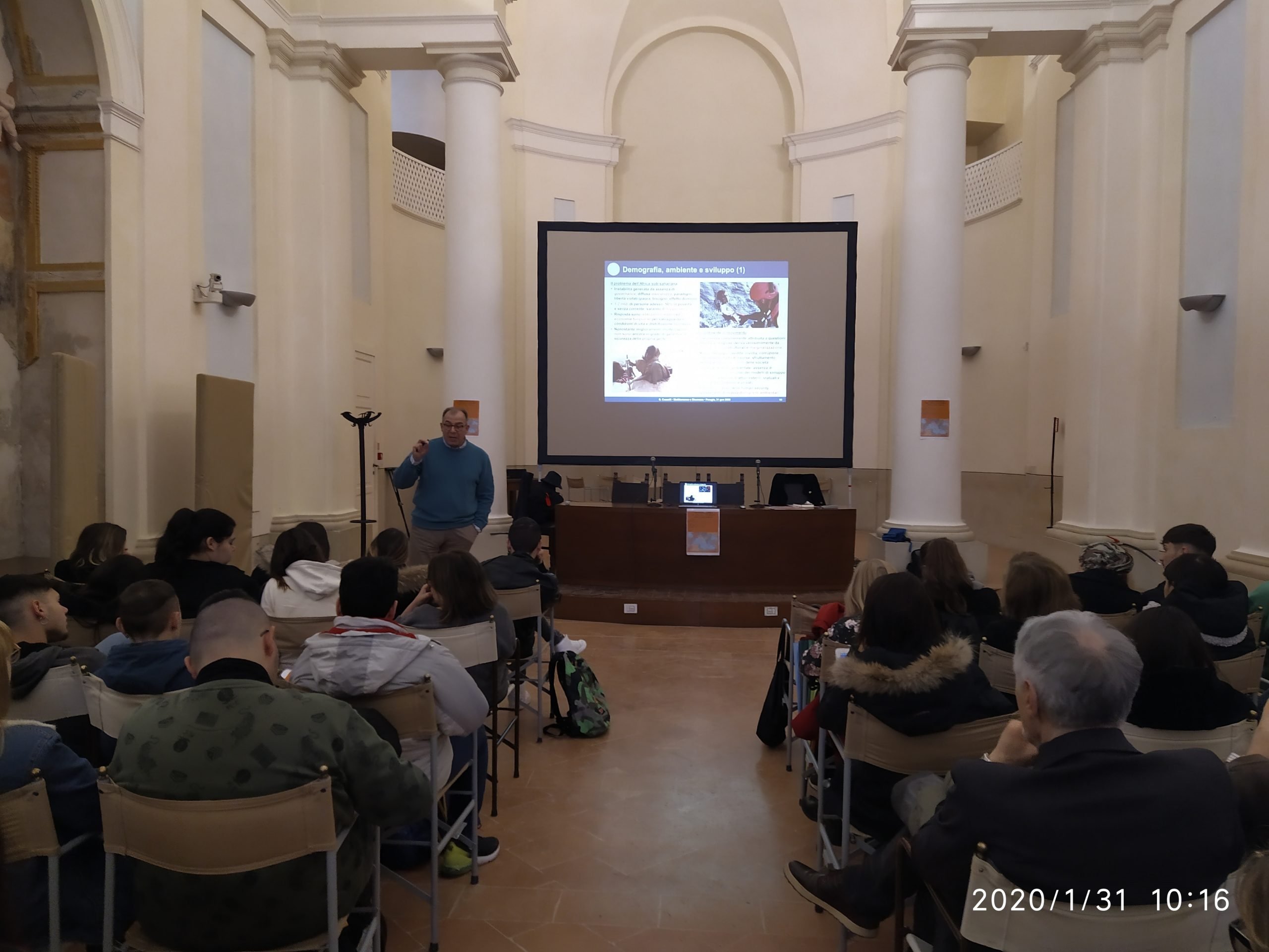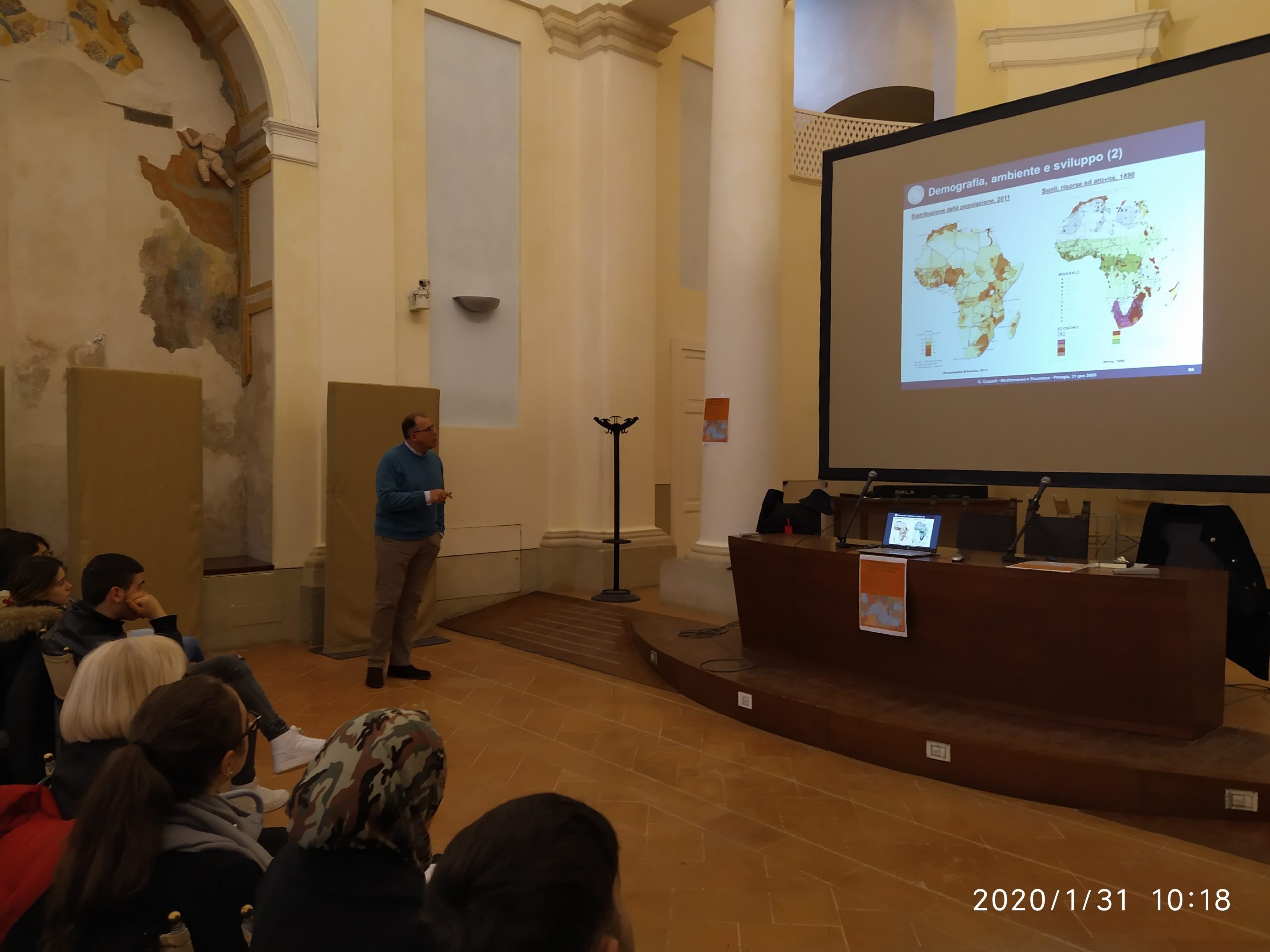 PERUGIA – Capire le dinamiche politiche, sociali economiche che caratterizzano la zona del Mediterraneo, martoriata da crisi, conflitti e instabilità. E’ stato questo lo scopo dell’incontro organizzato da Rosalba Bruno, responsabile dell’Istituto professionale per i servizi commerciali Polo-Bonghi di Bastia Umbra, rivolto ai ragazzi delle classi terza, quarta e quinta della scuola. L’incontro, dal titolo “Mediterraneo e sicurezza: i termini dell’equazione”, si è svolto presso la Sala Sant’Anna di Perugia e ha visto la partecipazione del dottor Giorgio Cuzzelli, docente dell’Università degli Studi di Napoli “L’Orientale”.