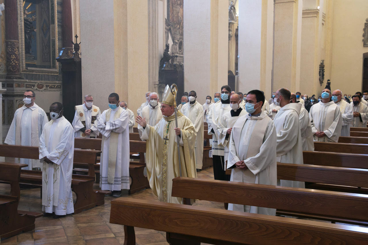 ASSISI – “Ripartiamo non solo con l’impegno di sempre, ma con uno slancio ancora più forte. La famiglia ecclesiale ci aspetta generosi e scattanti al varco di questa fase 2 della vita sociale e pastorale”. Lo ha detto il vescovo della Diocesi di Assisi – Nocera Umbra – Gualdo Tadino, monsignor Domenico Sorrentino, ai tanti sacerdoti e religiosi che sabato 30 maggio, hanno partecipato alla santa messa crismale nella cattedrale di San Rufino.