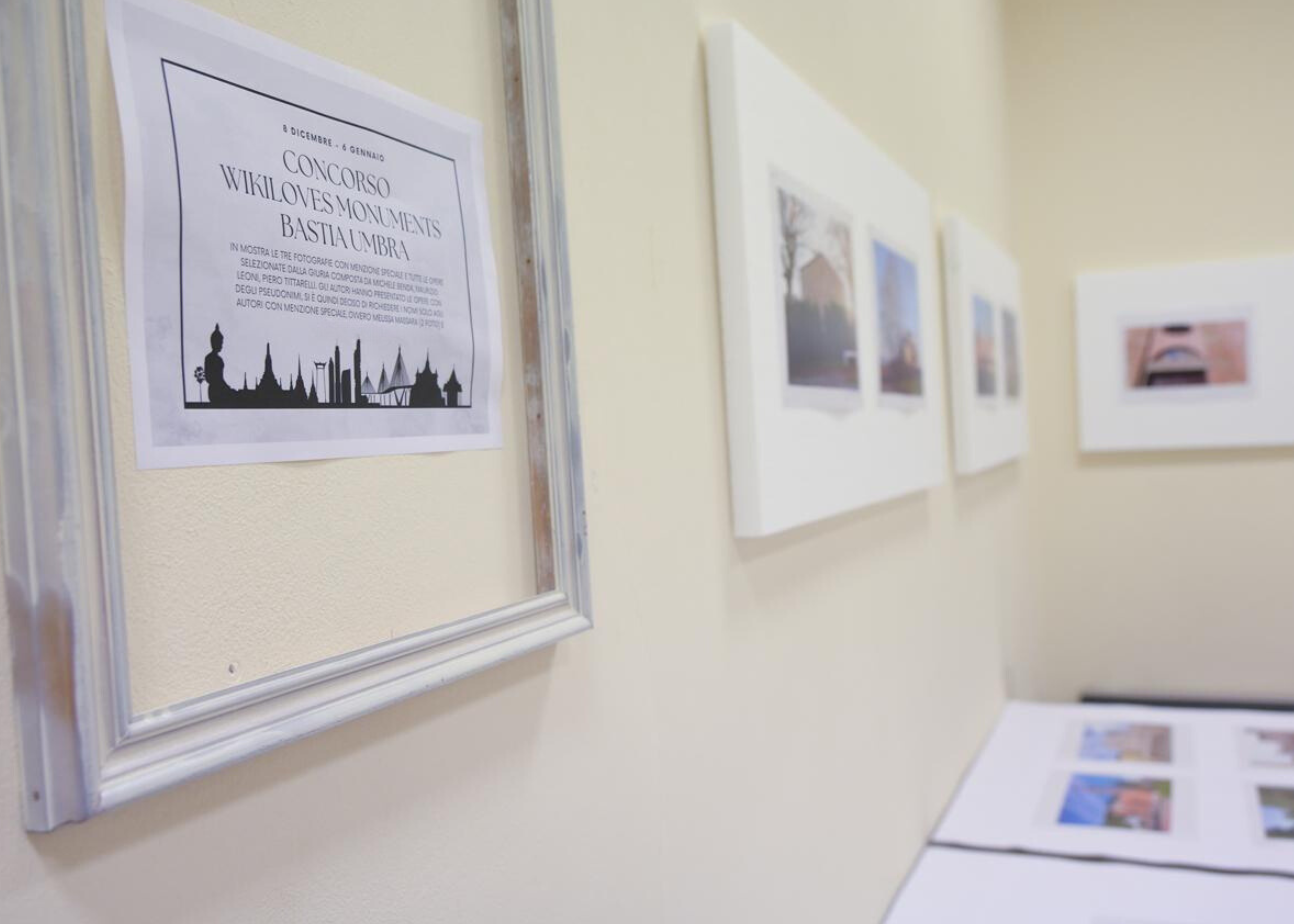 Oltrepassando il “proscenio” di un mini-palco di teatro, creato tra un locale e l’altro, si entra nella seconda stanza dov’è allestita la mostra fotografica del concorso Wiki Loves Monuments Umbria, sez. Bastia U. Il concorso per la nostra regione è stato organizzato dal comune di Bastia U. in collaborazione con l’associazione Wikimedia Italia partner dell’enciclopedia on line Wikipedia.