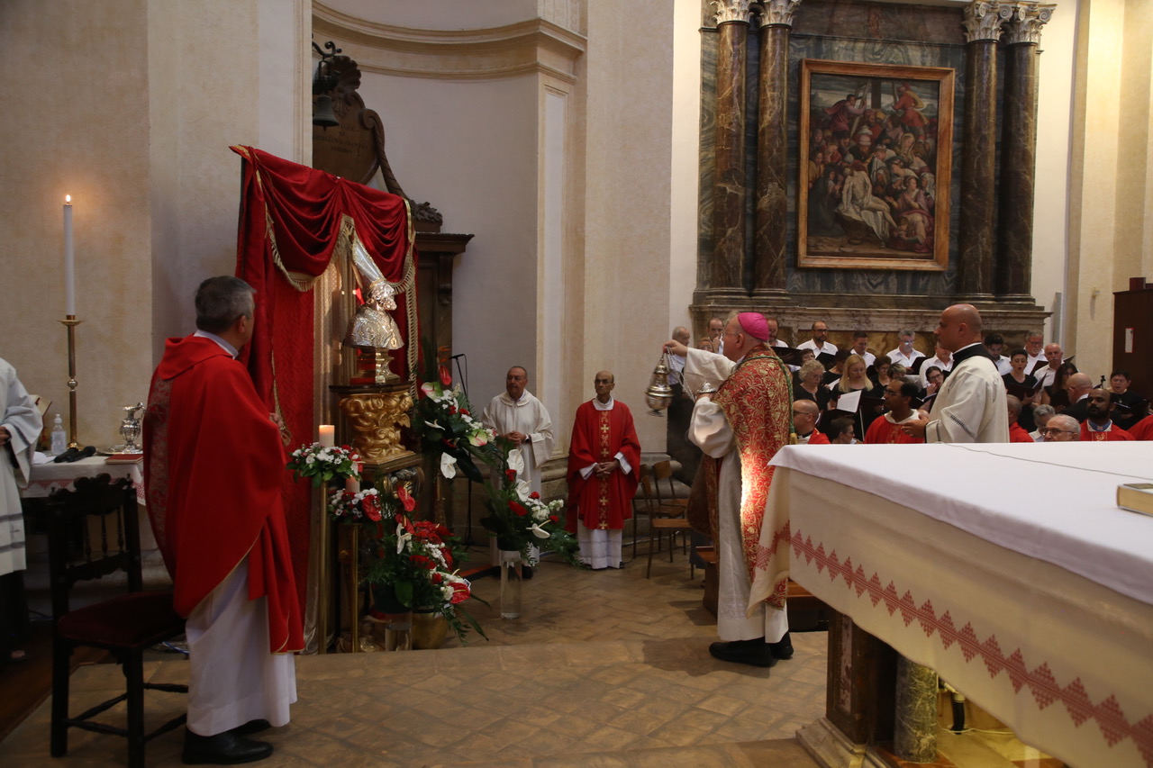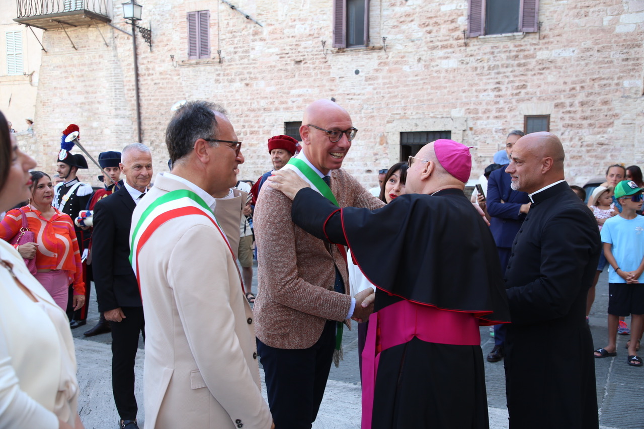 ASSISI – “La Chiesa non è un recinto chiuso ma un luogo in cui si raccolgono gioie e dolori dell’umanità, e ogni volta che siamo all’altare è il mondo che si raduna con noi”. Lo ha detto il vescovo delle diocesi di Assisi – Nocera Umbra – Gualdo Tadino e di Foligno, monsignor Domenico Sorrentino, durante il Pontificale da lui presieduto lunedì 12 agosto per la solennità di San Rufino, patrono della Città di Assisi e della diocesi. Alla solenne celebrazione nella cattedrale assisana, animata dalla Cappella musicale di San Rufino, erano presenti le autorità civili e militari anche degli altri Comuni della diocesi. Ad animare la santa messa, la Cappella musicale di San Rufino. Nell’omelia il vescovo ha fatto riferimento alla crisi della società e della Chiesa, a problemi, come il cambiamento climatico, le conseguenti migrazioni, l’impegno politico, la disgregazione della famiglia sottolineando che i “confini chiesa-mondo sono molto labili” e per questo ha invitato i fedeli a non separare i due ambiti o a disinteressarsi degli stessi. “Quello che succede nel mondo ci riguarda – ha detto monsignor Sorrentino – sia perché la carità impone a noi cristiani di tenere lo sguardo fisso sui problemi dei fratelli, sia perché risorse importanti vengono investite nella industria delle armi piuttosto che in ambiti fondamentali come la sanità”. Alla luce di questa crisi generale, il vescovo è tornato a chiedere uno “scatto di entusiasmo. Il programma pastorale che sto per darvi a settembre, e che è stato elaborato dai consigli pastorali delle due diocesi sorelle affidate alla mia cura, è un progetto fondamentalmente missionario. Chiede di prendere le distanze dal modello clero-centrico delle nostre parrocchie, facendo nostro senza indugi il modello ‘familiare’. Ci chiede di lasciare il nido sicuro ma sempre più vuoto delle nostre sacrestie per scendere in campo aperto, battendo le strade e bussando alla porta delle case. È la carità che si fa proposta di Vangelo e di fraternità, nelle case e fra le case. Tempo di rimboccarsi le maniche”. Monsignor Sorrentino ha ricordato poi come San Rufino sia “la nostra santa radice. L’evangelizzatore e il pastore. Il martire che ha fecondato con il suo sangue una storia di santità che non finisce di dare i suoi frutti, all’interno e all’esterno dei confini della nostra Chiesa. Fare festa del patrono e col patrono è un po’ come il sedersi a tavola della famiglia. I momenti belli balzano subito alla mente, ed è bene cominciare con essi. Proprio ieri ne abbiamo vissuto uno con la festa di Santa Chiara. Tra qualche mese avremo quella di San Francesco. Nell’anno che verrà avremo la canonizzazione del beato Carlo Acutis. Dentro il percorso della santità cogliamo i frutti maturi del sangue versato da san Rufino”.
