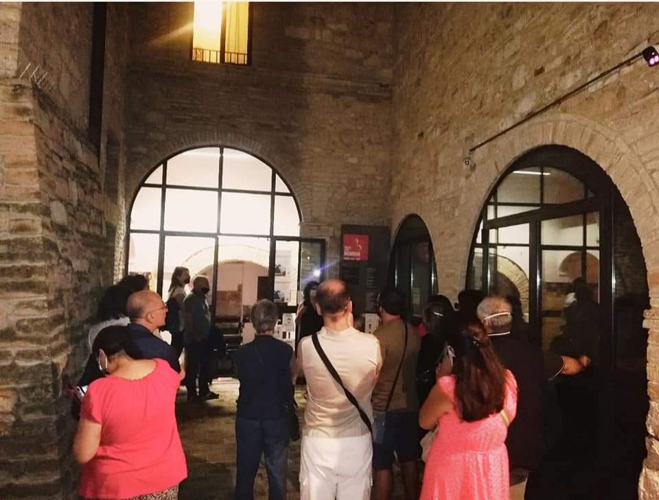 ASSISI – Grande successo per l’evento “Notte al Museo” che si è tenuto sabato 8 agosto nella città serafica. L’iniziativa, organizzata dal “Museo della Memoria, Assisi 1943-1944” in collaborazione con l’Associazione guide turistiche dell’Umbria (AGTU), ha visto l’adesione di circa 50 partecipanti, tra turisti e residenti che, divisi in gruppi e nel rispetto delle disposizioni anti-Covid, sono andati alla scoperta di alcuni luoghi di culto e delle meraviglie artistiche e architettoniche della città per giungere al Santuario della Spogliazione – Museo della Memoria.