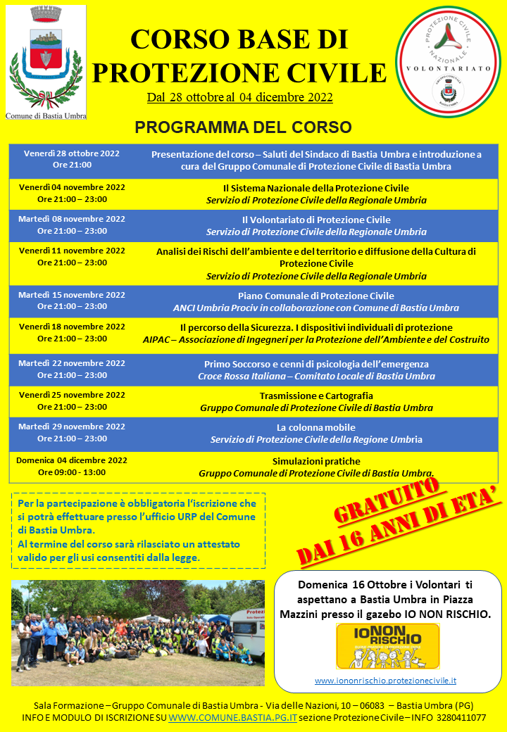 INFO E MODULO DI ISCRIZIONE SU WWW.COMUNE.BASTIA.PG.IT sezione Protezione Civile – INFO 3280411077 (whatsapp)