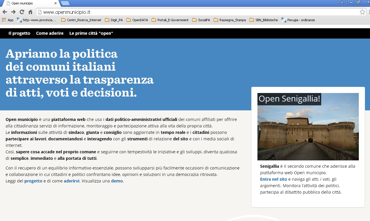Senigallia e Udine hanno aderito anche alla piattaforma “open municipio”, che permette di inserire on line tutte le decisioni e gli atti della città.
