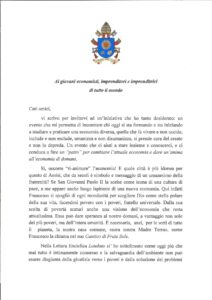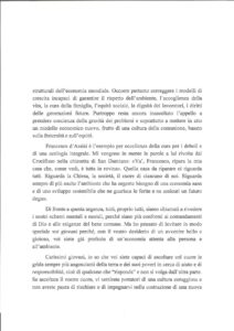 Grazie ancora, Santo Padre, per questa “profezia”. Grazie per la fiducia che ripone in questa comunità assisana. Cercheremo di non deluderLa. E non ci dimenticheremo, come Lei chiede, di assicurarLe la nostra preghiera.