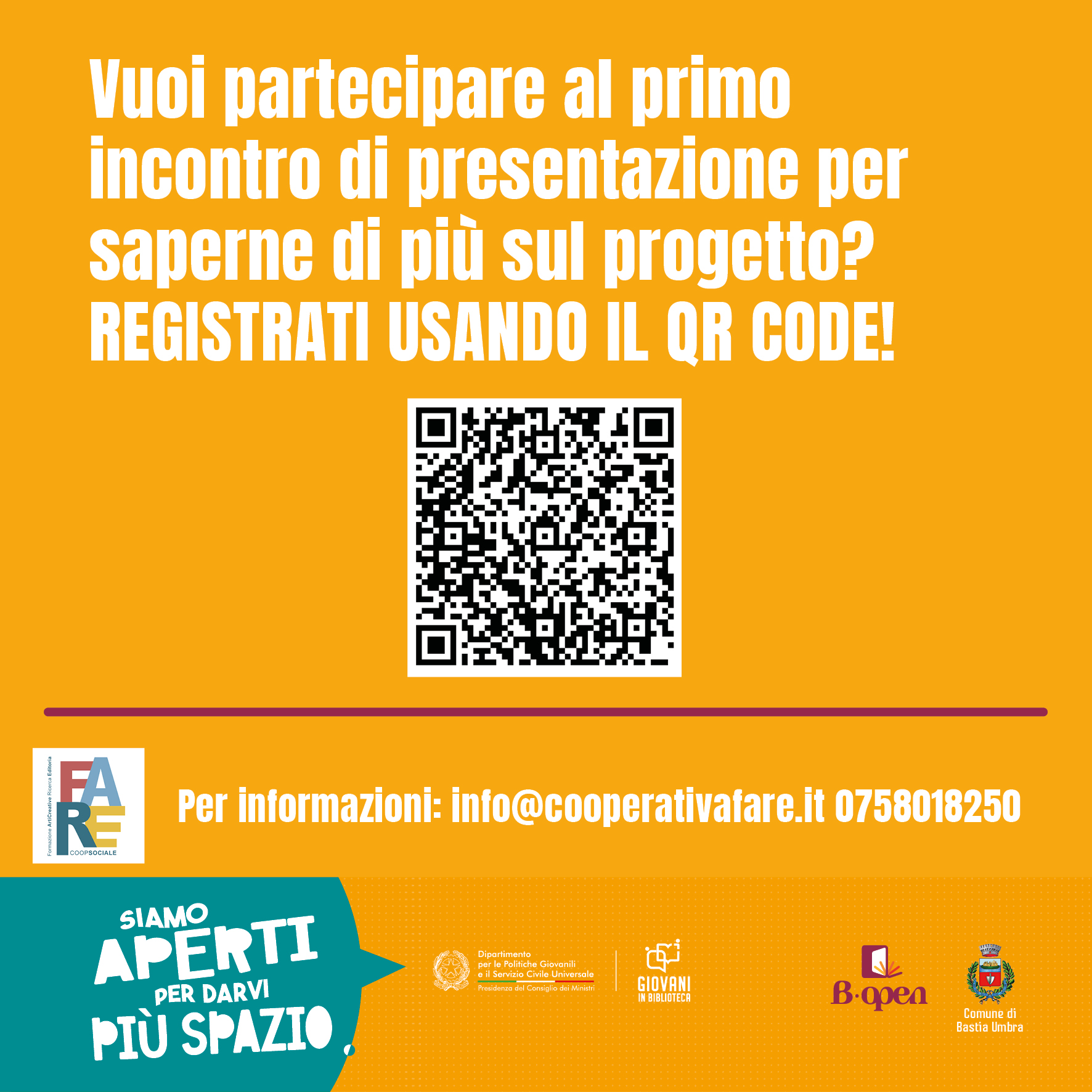 Sei interessato e vuoi scoprire di più sul Progetto? Scannerizza il QR CODE e vieni alla Biblioteca Comunale Martedì 11 Marzo 2025 alle 21:00 per il primo incontro di presentazione!