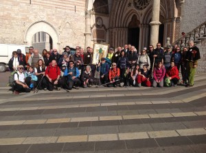 Assisi, 2 aprile 2015 – Questa mattina alle ore 9.30 sessanta pellegrini si sono dati appuntamento presso la Basilica Inferiore di San Francesco quale tappa iniziale di un pellegrinaggio che parte dalla Città Serafica per concludersi il 9 aprile ad Ascoli Piceno.