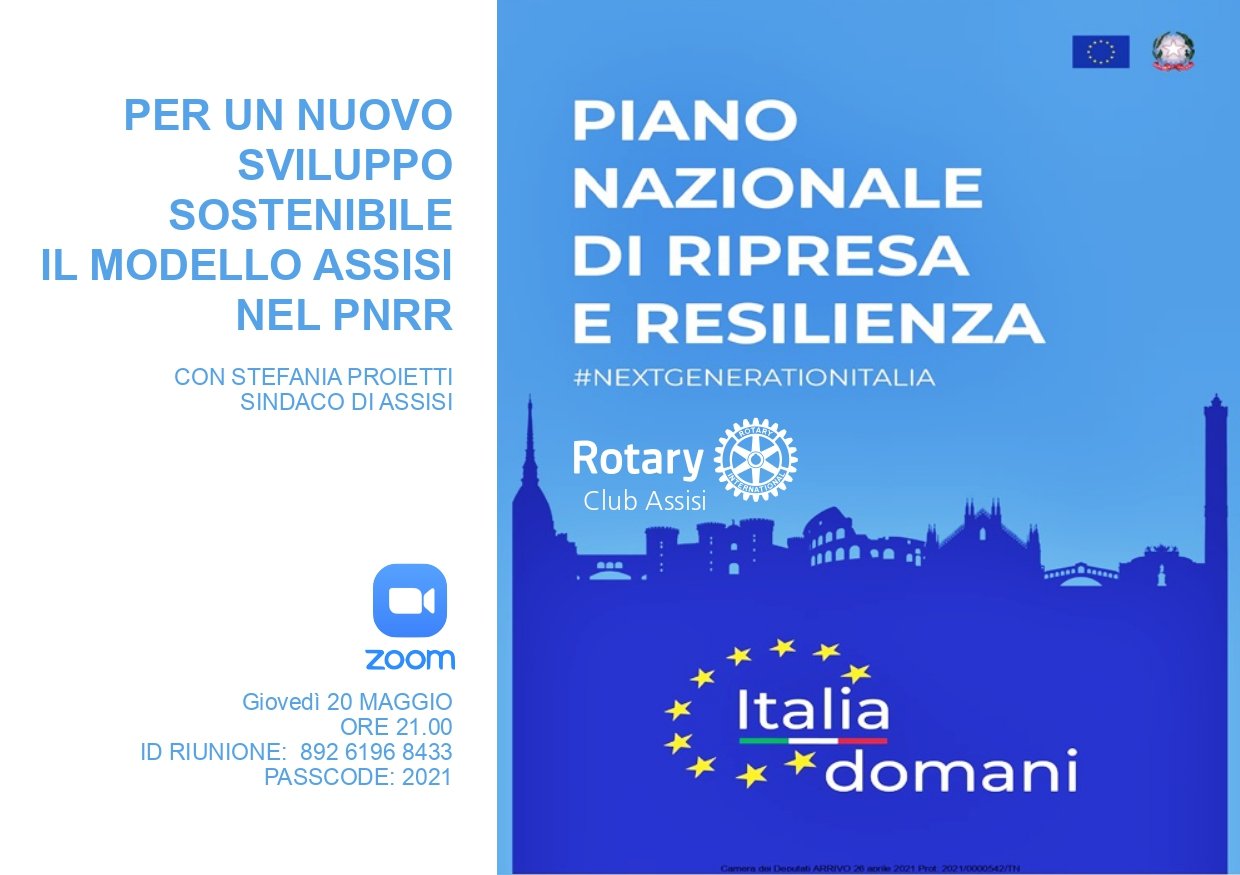 L’appuntamento è per giovedì 20 maggio alle ore 21 in diretta Zoom al link https://us02web.zoom.us/j/89261968433?pwd=QVoyVDZDd2RxK0NZZUZIMGozYi9RUT09 o sul canale YouTube “Rotary Assisi”; i partecipanti potranno proporre interventi e domande al Sindaco.