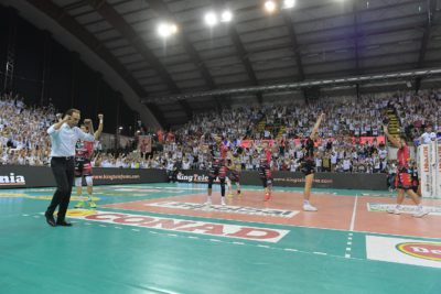 È della Sir Safety Conad Perugia gara 1 di finale scudetto! In uno scenario da sogno, con i Sirmaniaci scatenati e con il muro bianco di tutto il pubblico perugino a fare un tifo assordante, i Block Devils sconfiggono 3-1 la Cucine Lube Civitanova e si portano avanti 1-0 nella serie che assegna il tricolore.