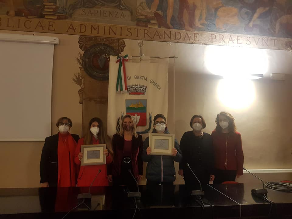 La cerimonia di premiazione si è svolta ieri in Sala della Consulta del Palazzo Municipale nel rispetto delle norme anti-covid alla presenza dei soli alunni finalisti e le rappresentanti la Scuola e il Comune. Oltre al collegamento on–line con le componenti il Tavolo, una diretta Facebook sulle pagine istituzionali ha consentito di estendere la fruizione dell’iniziativa a tutta la cittadinanza; il video della manifestazione è pubblicato sulle pagine FB Comune di Bastia Umbra e Paola Lungarotti Sindaco.