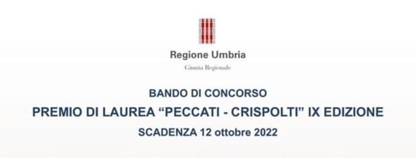 Premiare, valorizzare e diffondere le migliori tesi di laurea in tema di Pubblica Amministrazione, e, nello specifico, il ruolo svolto anche in relazione all’impiego ed alla gestione delle risorse pubbliche (nazionali, europee) destinate ai cittadini, ai lavoratori e alle imprese: è la finalità del concorso “Premio Peccati – Crispolti” promosso annualmente dalla Giunta regionale dell’Umbria per onorare la memoria delle dipendenti Margherita Peccati e Daniela Crispolti, proditoriamente uccise il 6 marzo 2013, a ricordo del loro sacrificio e della loro testimonianza di serietà professionale ed impegno.