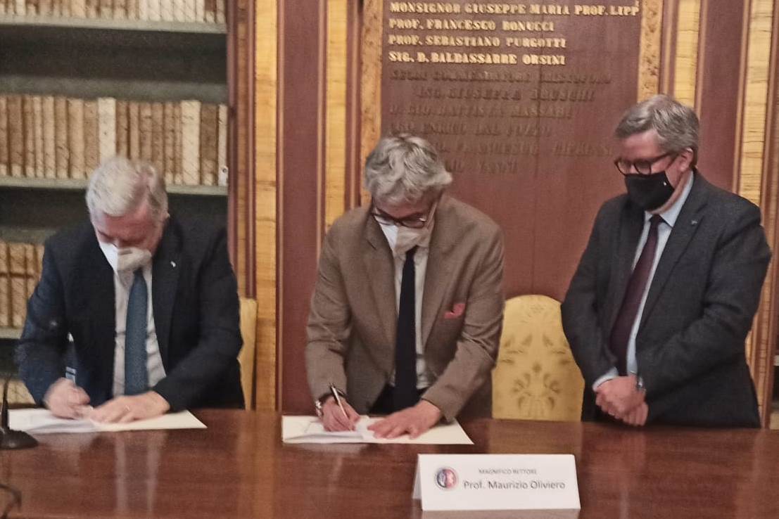 All’incontro con la stampa in occasione della firma della convenzione attuativa erano presenti il Magnifico Rettore Prof. Maurizio Oliviero, il Presidente della Camera di Commercio dell’Umbria Ing. Giorgio Mencaroni, il Presidente di Mirabilia Network Dott. Angelo Tortorelli e il Direttore del Dipartimento di Lettere – lingue, letterature e civiltà antiche e moderne, Prof. Stefano Brufani.
